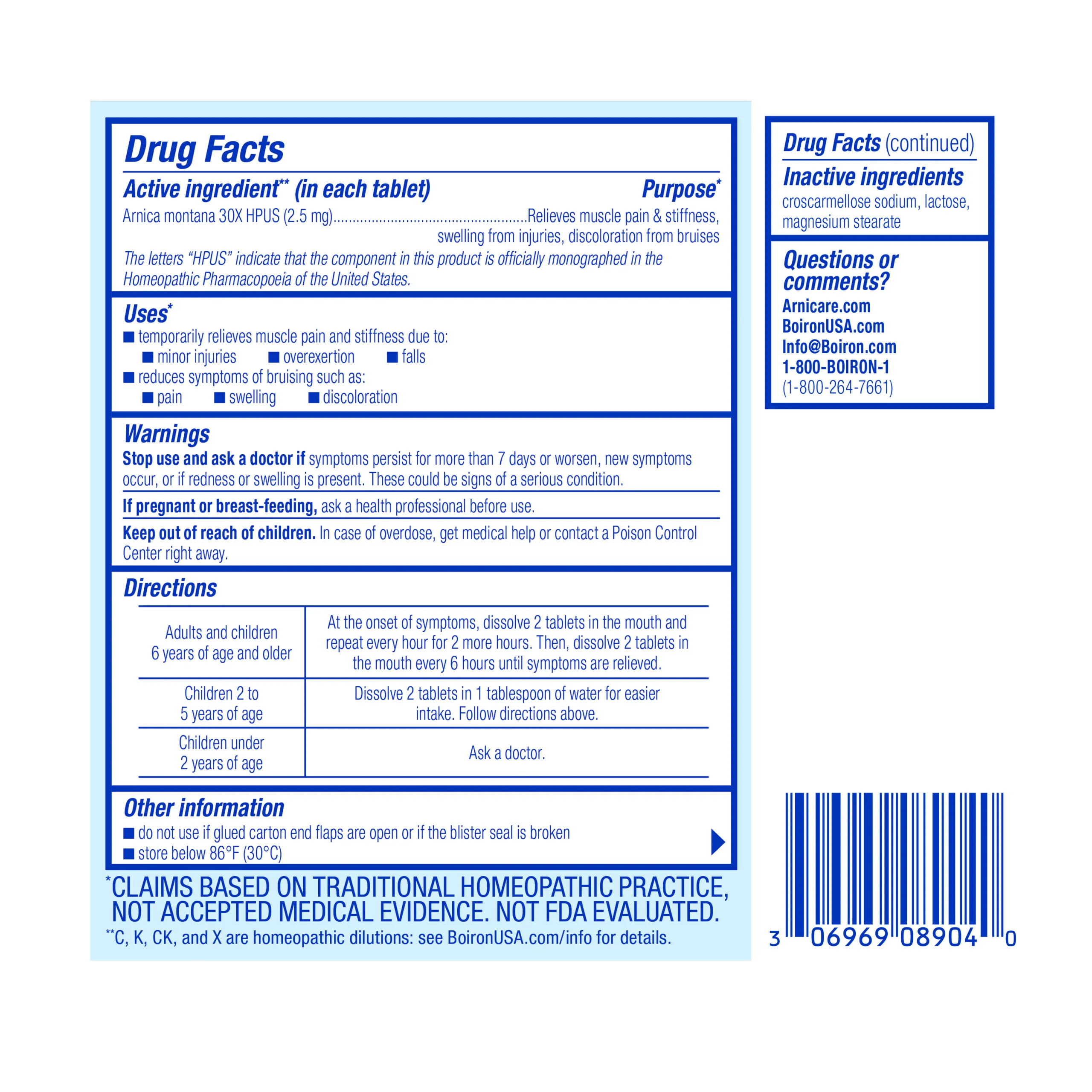 Arnica 30X Tablets by Boiron are formulated to relieve minor muscle pain, stiffness, swelling from injuries, and bruises.* A homeopathic medicine, Arnica 30X Tablets are non-drowsy and have no known interactions with other medications, herbs, or supplements. The meltaway tablets are easy to take without water and gentle on the stomach, making them convenient to use anywhere.