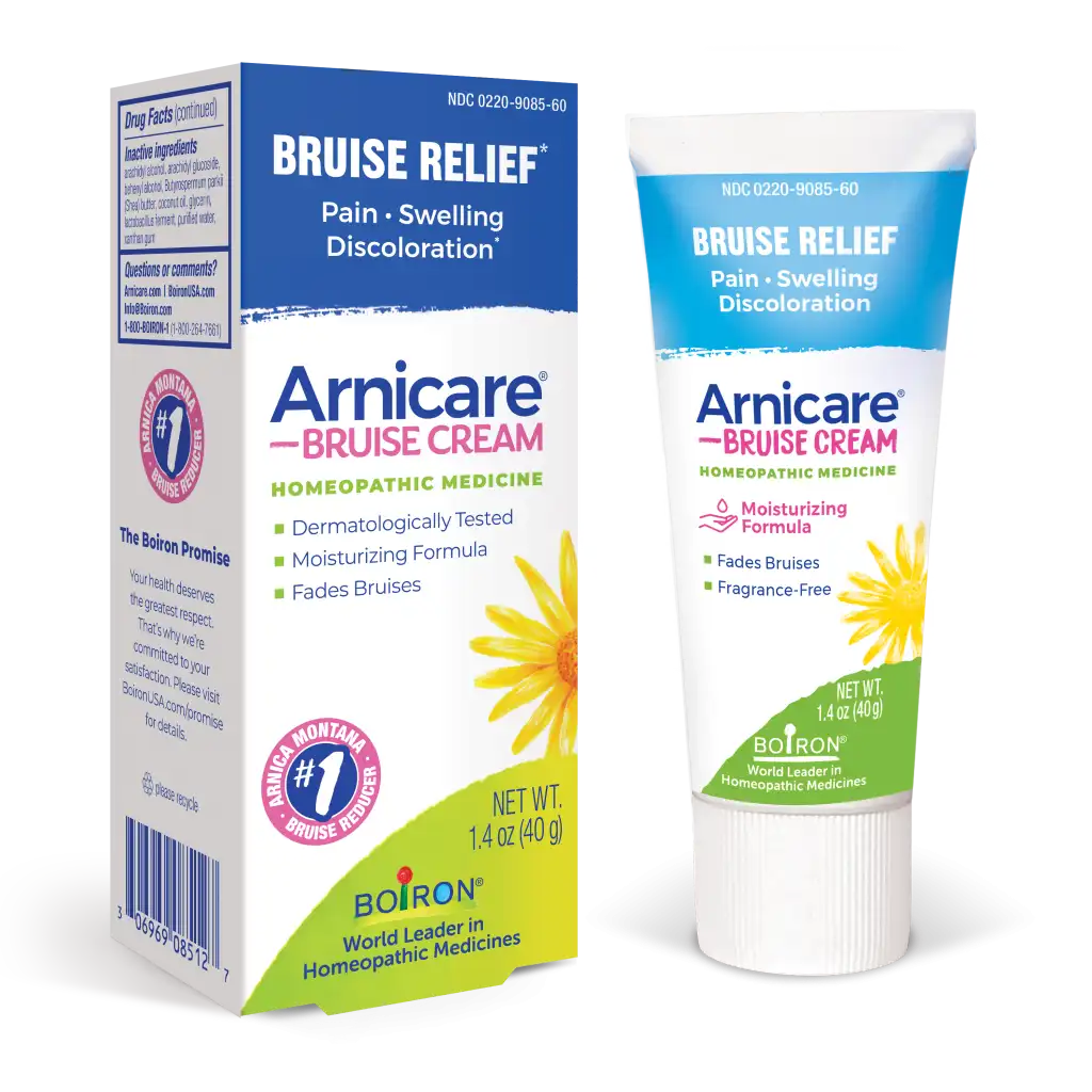 Bruise easily? Reach for Arnicare Bruise Cream by Boiron. Made from fresh Arnica plants, it diminishes discoloration and reduces pain and swelling while moisturizing the skin.* The cream has a light texture, making it a great choice for bruising on fragile and delicate skin. This formulation is 100% free of fragrances, parabens, and dyes for daily use as part of a skin care routine.