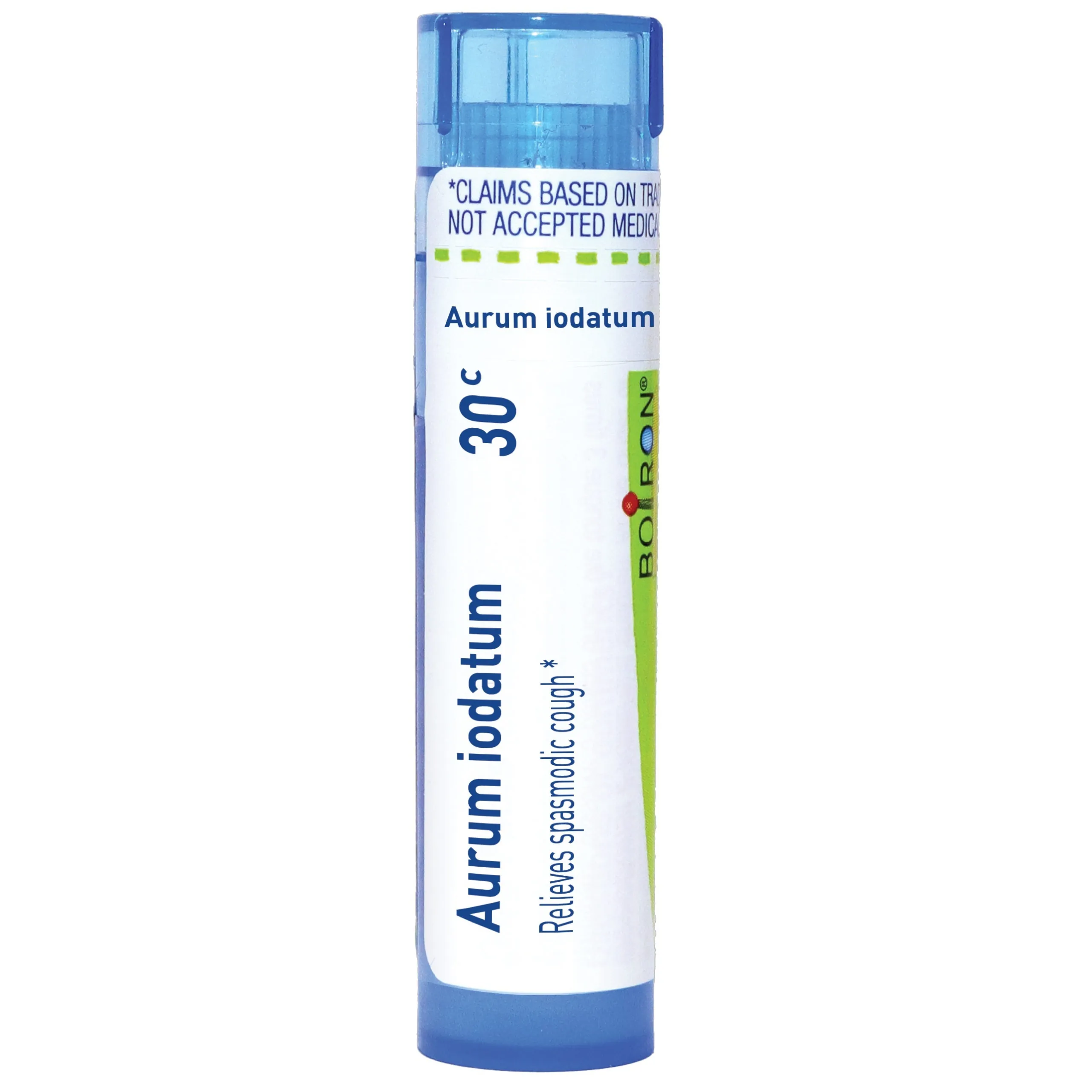 Customize your care with Boiron single medicines for highly targeted relief. Aurum Iodatum 6C is a homeopathic medicine for spasmodic cough.* The pellets melt in your mouth and can be taken on the go, no food or water needed. (BoironUSA.com)