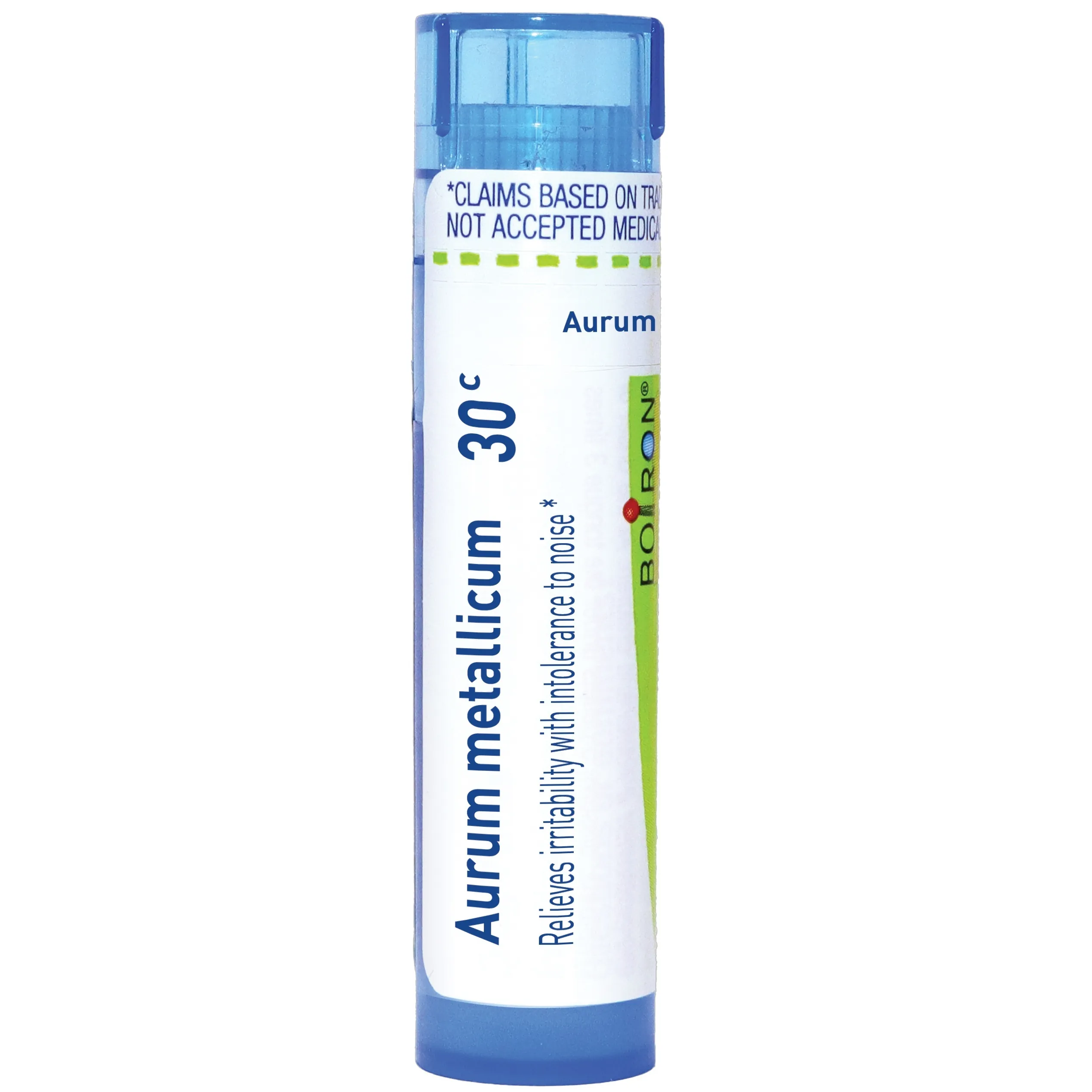 Customize your care with Boiron single medicines for highly targeted relief. Aurum Metallicum 15C is a homeopathic medicine for irritability with intolerance to noise.* The pellets melt in your mouth and can be taken on the go, no food or water needed. (BoironUSA.com)