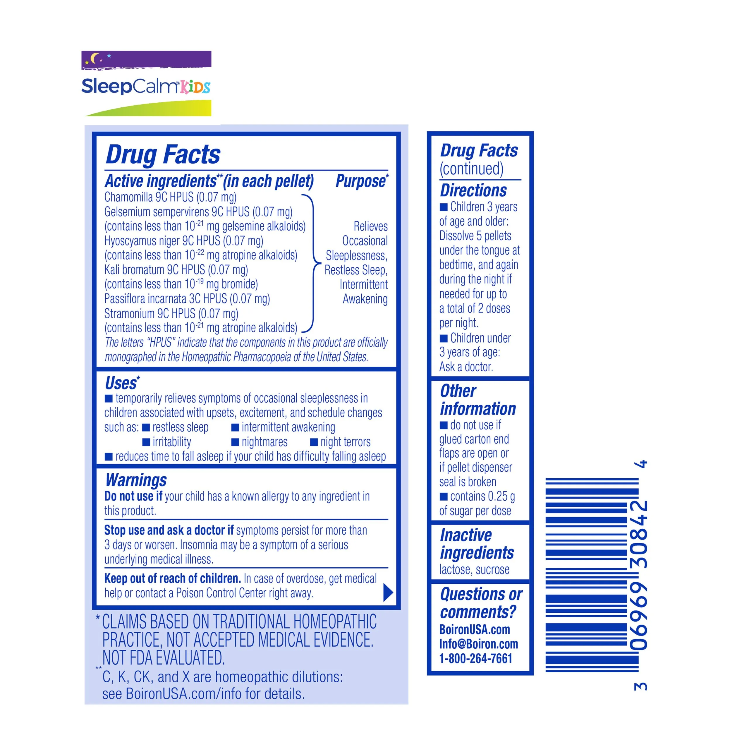 - SleepCalm Kids Pellets (two tubes). Helps calm occasional restless sleep and difficulty falling asleep due to upsets, excitement, or schedule changes.* Gentle, non-habit forming pellets melt in the mouth. Melatonin-free formula for ages 3 and up.