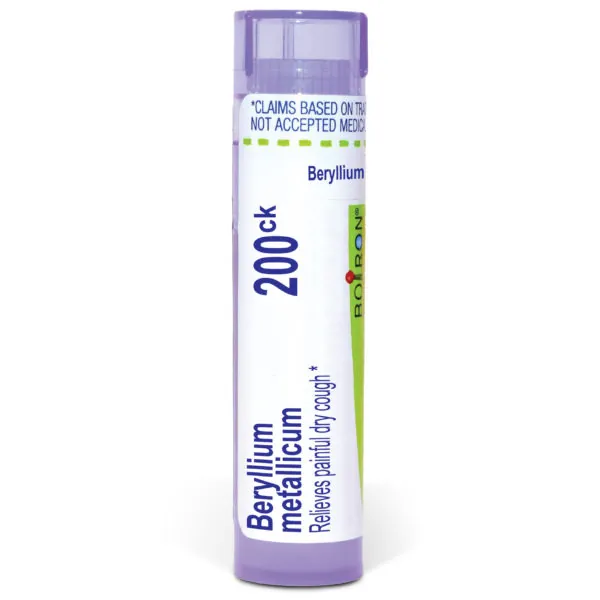 Customize your care with Boiron single medicines for highly targeted relief. Beryllium Metallicum is a homeopathic medicine for painful dry cough.* The pellets melt in your mouth and can be taken on the go, no food or water needed. (BoironUSA.com)