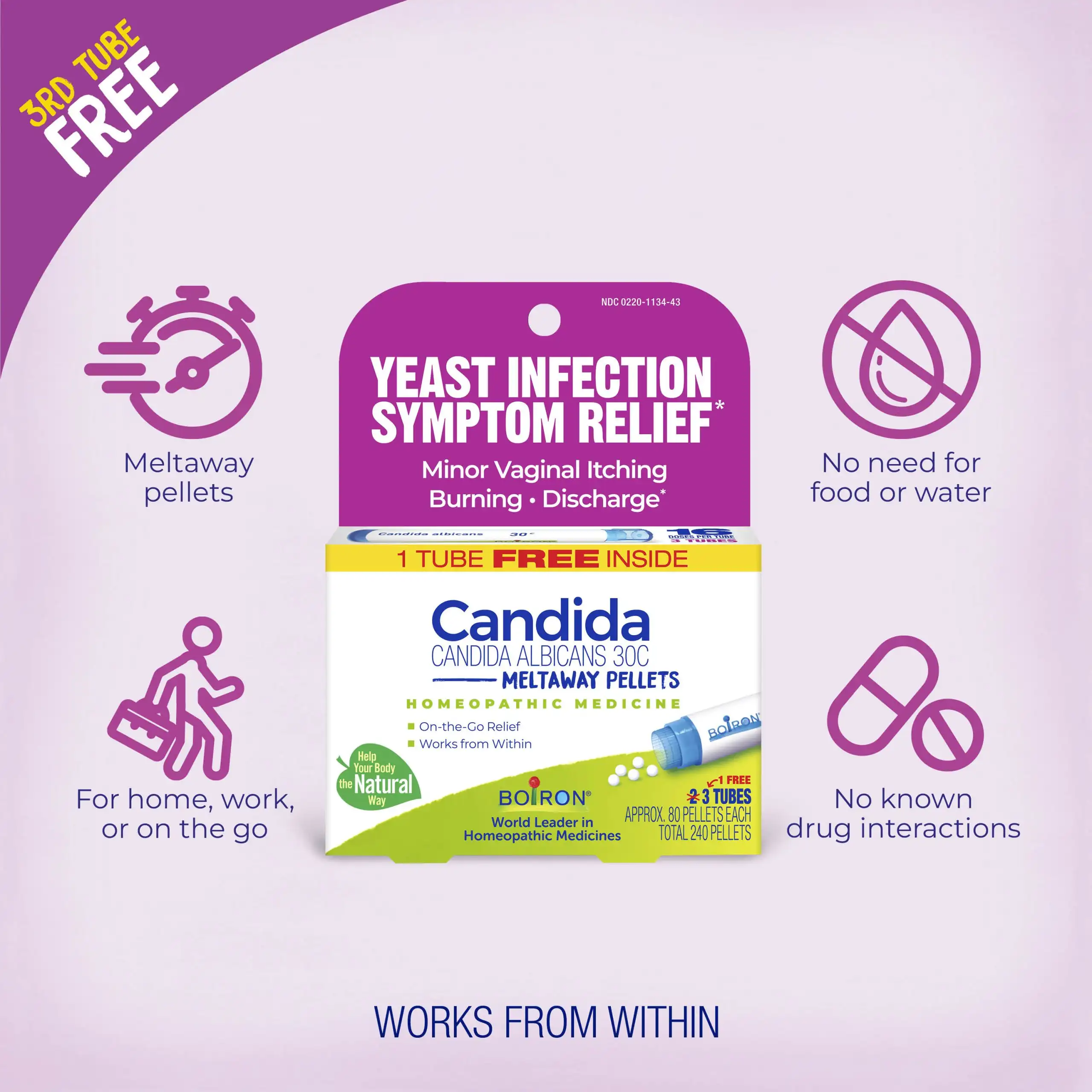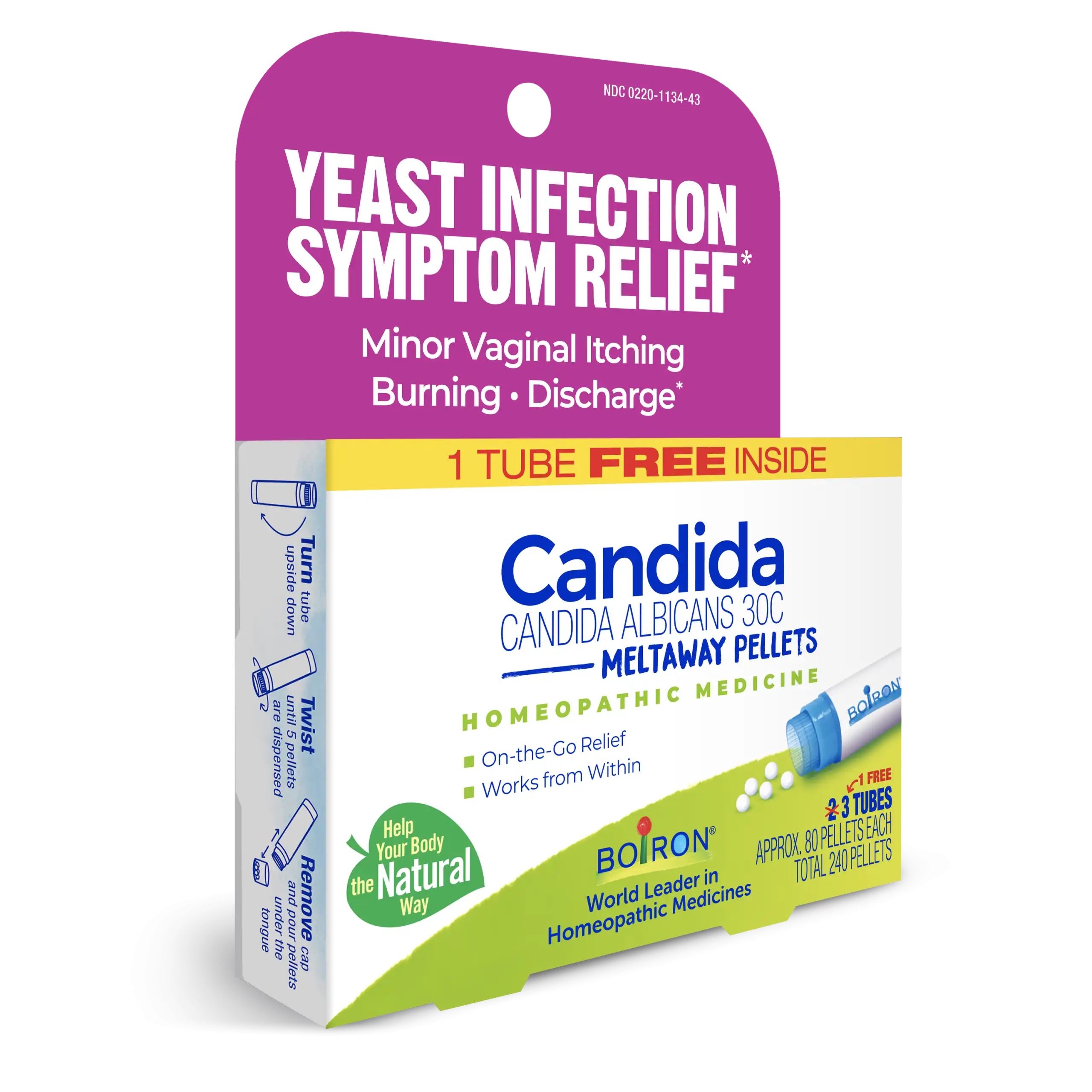 Customize your care with Boiron single medicines for highly targeted relief. Candida albicans 30C is a homeopathic medicine that works from within to target symptoms of yeast infection, including minor vaginal itching, burning, discomfort, and discharge.* The meltaway pellets dissolve under the tongue without water for convenient relief and come in easy dispensing tubes to take on the go.