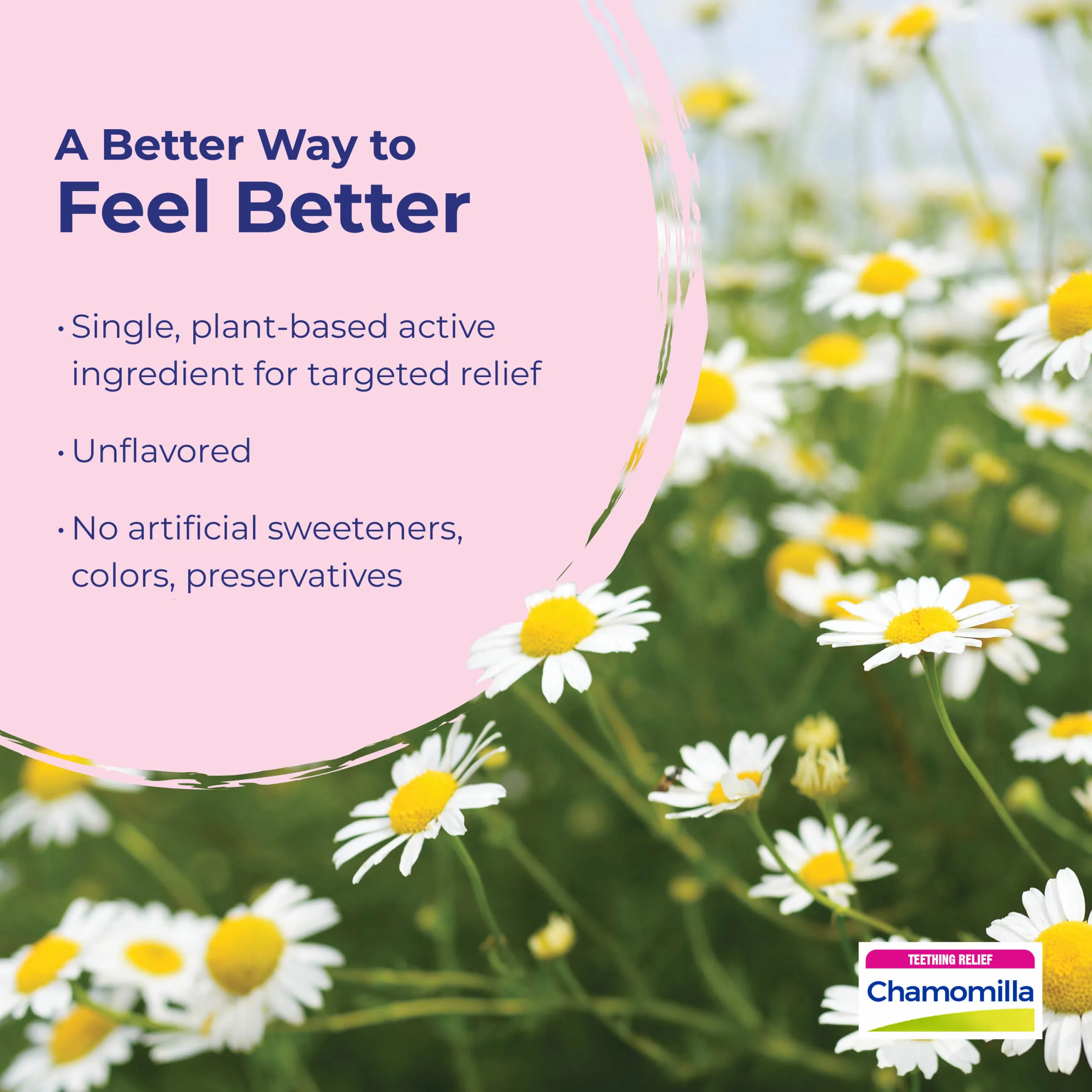 Customize your childโs care with Boiron single medicines for highly targeted relief. Chamomilla 30C, a homeopathic preparation of the chamomile flower, gently calms and relieves pain, irritability, and restlessness from teething.* The meltaway pellets dissolve under the tongue without water, making them ideal for toddlers and convenient for parents on the go.