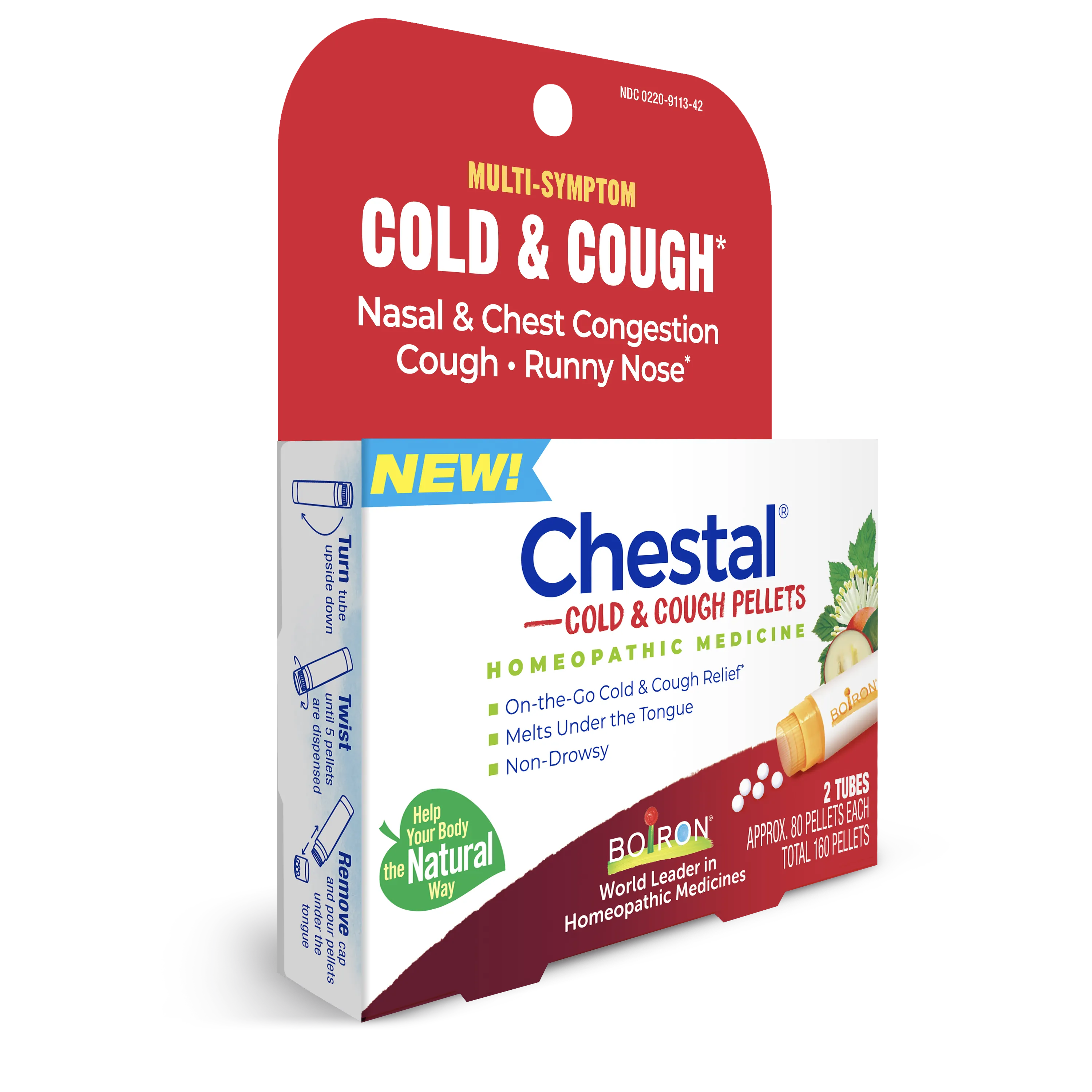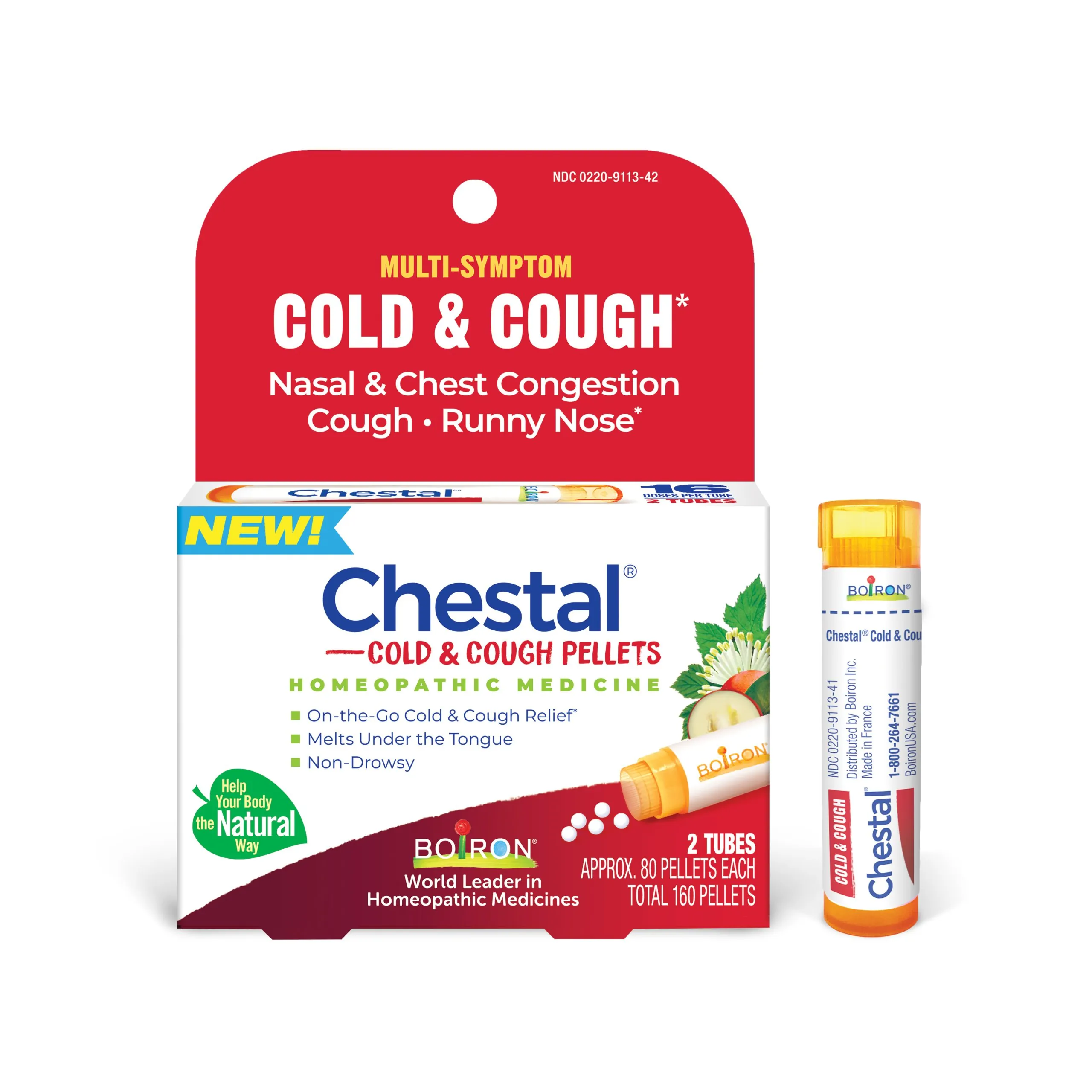 Enjoy the same trusted relief of Chestal Cold & Cough Syrup in a convenient meltaway pellet option. These dissolvable homeopathic granules melt under the tongue to target common cold and cough symptoms, including nasal and chest congestion, fitful cough, sneezing, occasional minor sore throat, and a runny or stuffy nose.*
