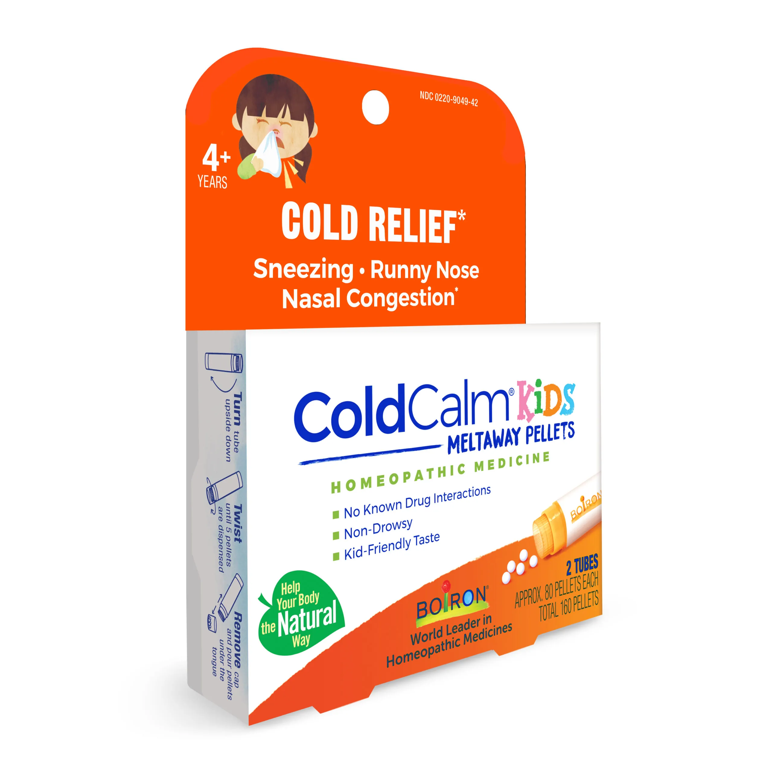 Non-drowsy relief for runny noses and sneezes is just a twist away. ColdCalm Kids Pellets by Boiron target specific cold symptoms at every stage of the cold.* Made for children 4 years of age and older, the meltaway pellets are easy to take. Simply twist the tube to dispense and let them dissolve in your child’s mouth. No water, chewing, or swallowing is needed.
