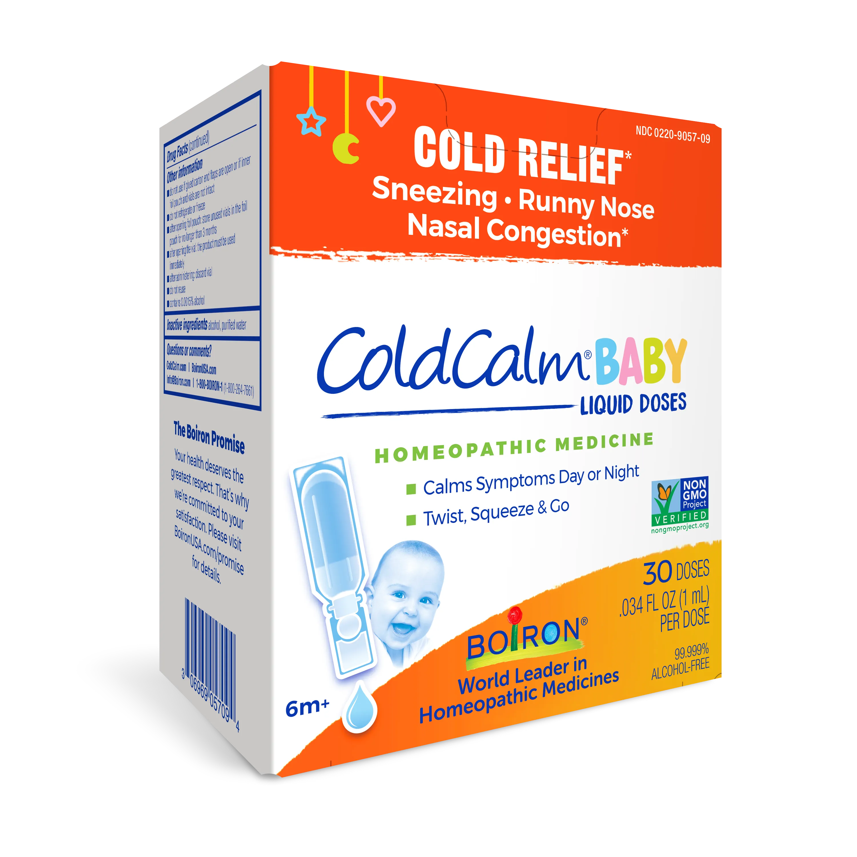 When little ones are sick and fussy with a cold, relief is just a squeeze away. ColdCalm® Baby Liquid Doses by Boiron work to relieve sneezing, runny nose, and nasal congestion at every stage of a cold.* This non-GMO children’s cold medicine comes in hygienic, individual doses that are easy to use. Just twist to open the pre-measured dose and squeeze the liquid into your child’s mouth. Recommended for children 6 months of age and older.