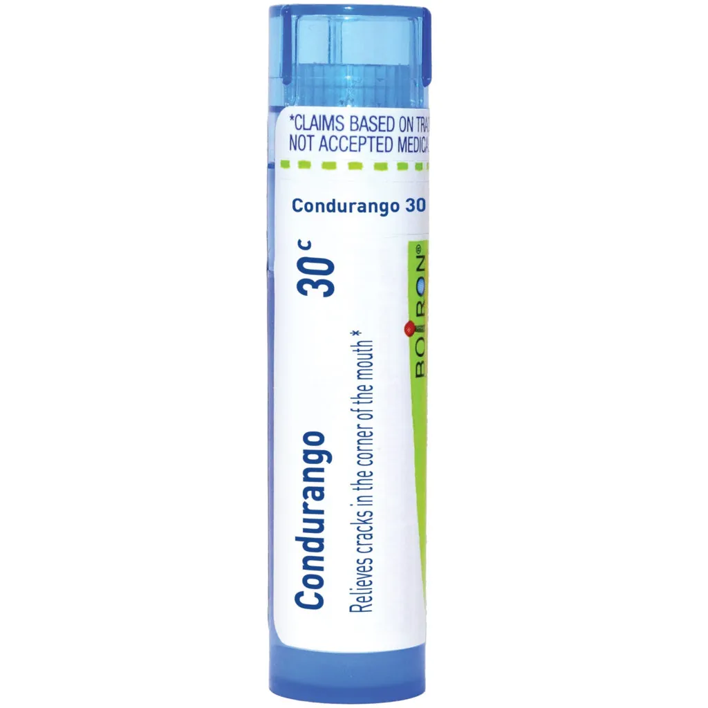 Customize your care with Boiron single medicines for highly targeted relief. Condurango is a homeopathic medicine for cracks in the corner of the mouth.* The pellets melt in your mouth and can be taken on the go, no food or water needed.