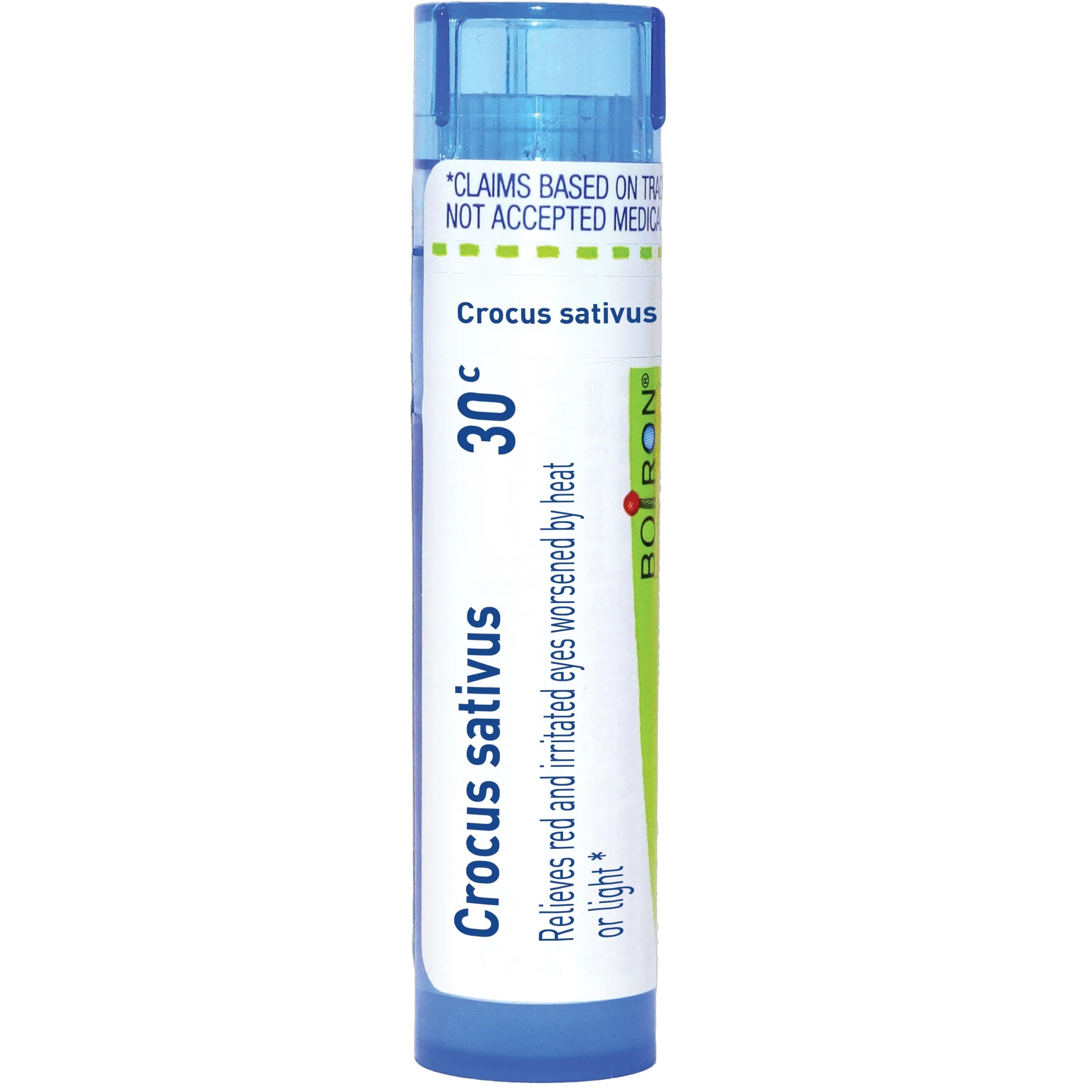 Customize your care with Boiron single medicines for highly targeted relief. Crocus Sativus 30C is a homeopathic medicine for red and irritated eyes worsened by heat or light.* The pellets melt in your mouth and can be taken on the go, no food or water needed.