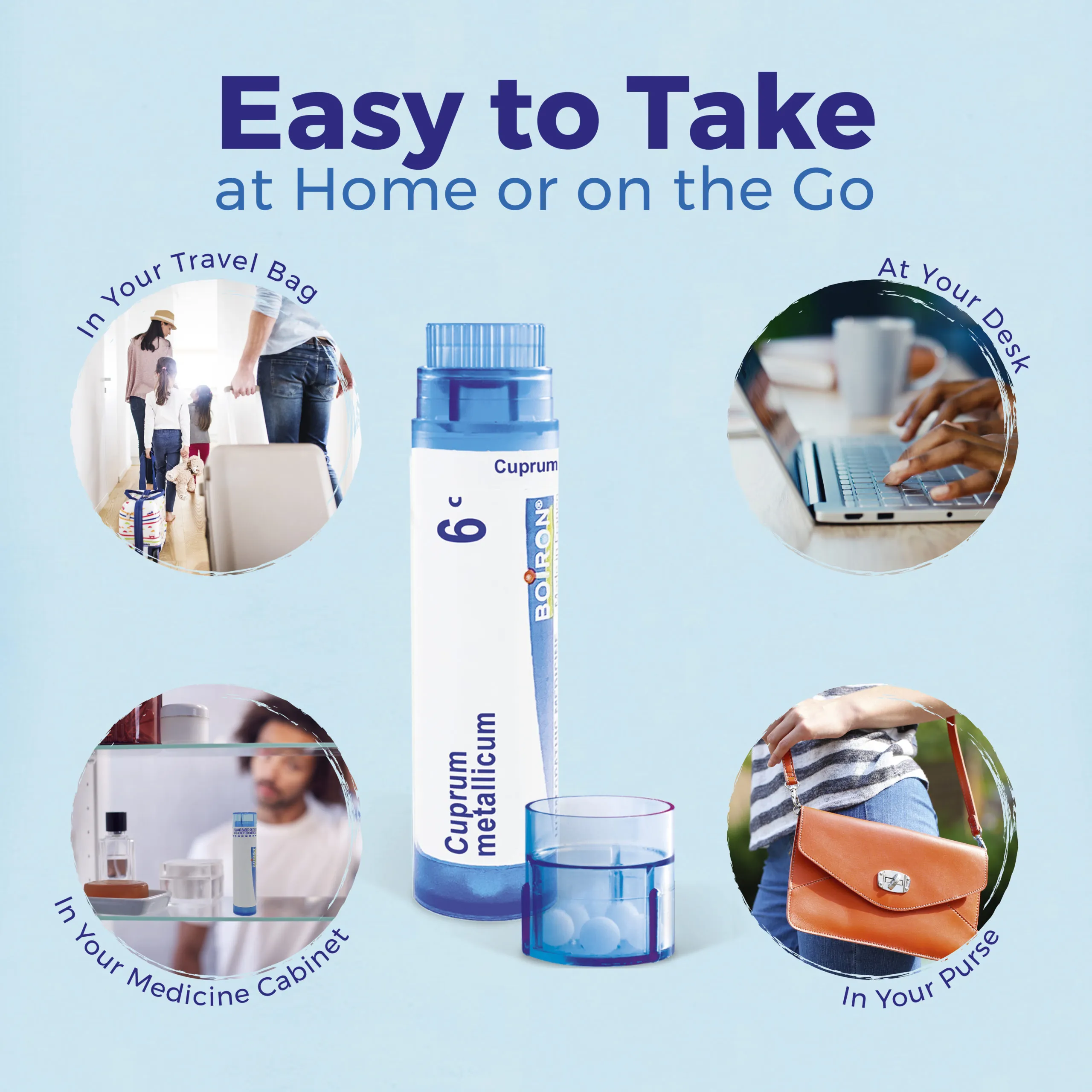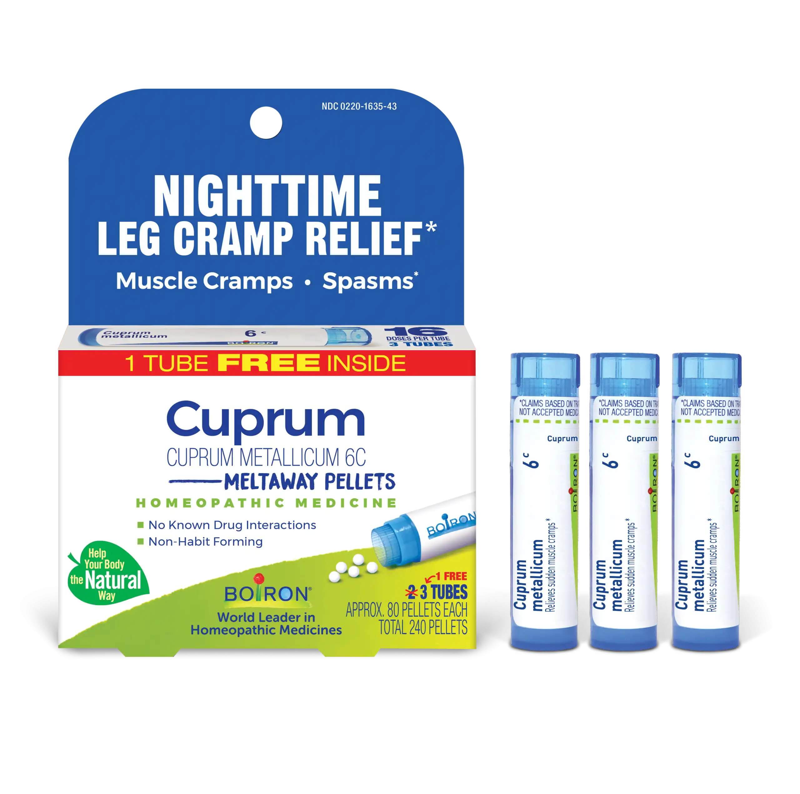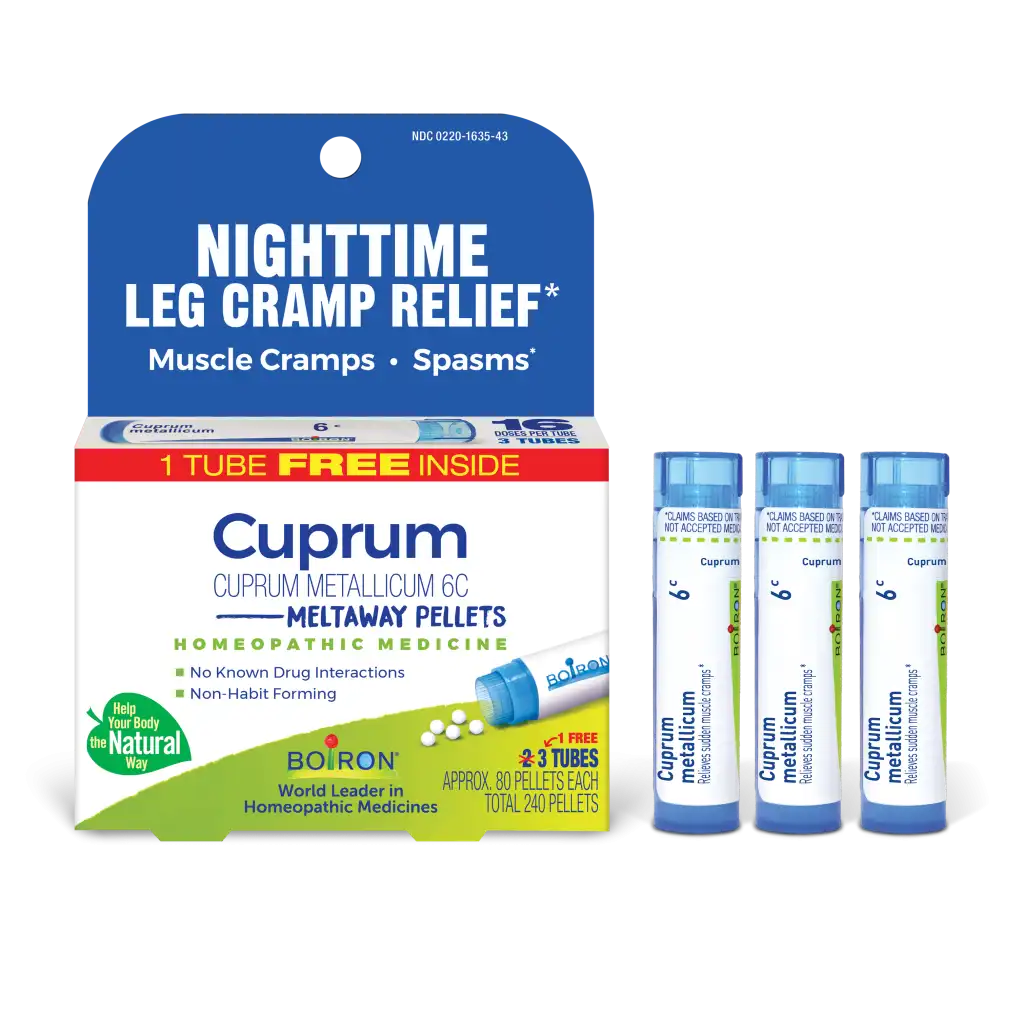 Customize your care with Boiron single medicines for highly targeted relief. Cuprum metallicum is a homeopathic medicine that relieves pain associated with nighttime leg cramps and spasms.* It will not interact with other medications, herbs, or supplements. The meltaway pellets dissolve in the mouth without water and come in easy dispensing tubes to take on the go.