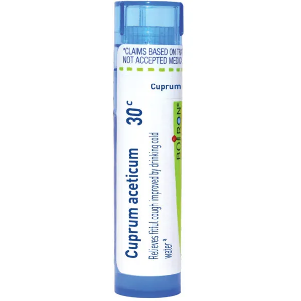 Customize your care with Boiron single medicines for highly targeted relief. Cuprum Aceticum is a homeopathic medicine for fitful cough improved by drinking cold water.* The pellets melt in your mouth and can be taken on the go, no food or water needed.