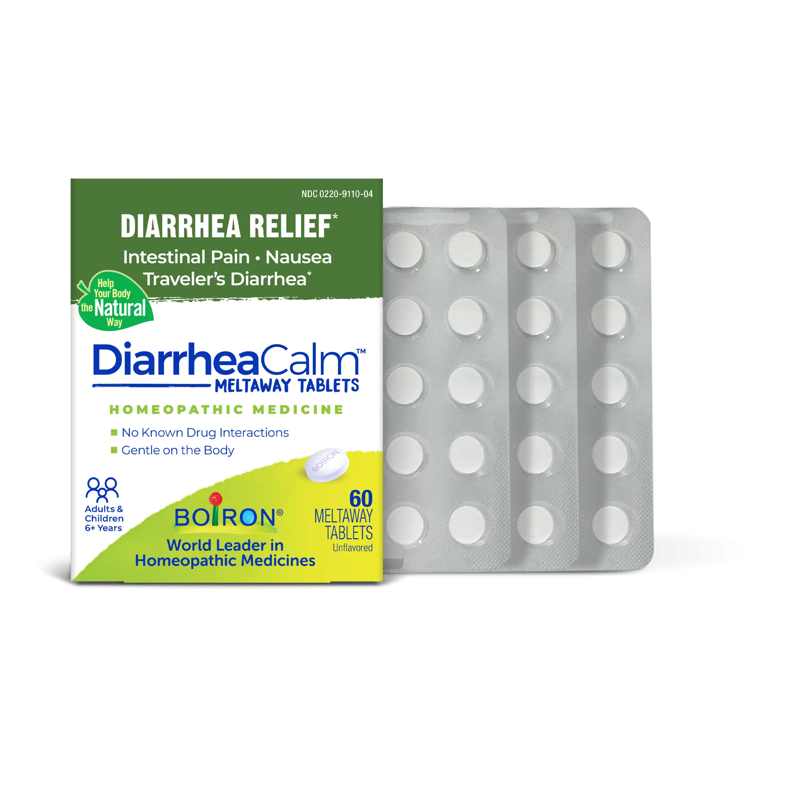 Calm your digestive system and reclaim your day with DiarrheaCalm Meltaway Tablets by Boiron. This homeopathic medicine offers targeted relief for acute diarrhea and traveler’s diarrhea symptoms, such as intestinal pain, bloating, gas, nausea, and vomiting.* Made with plant-based and other pure active ingredients, these meltaway tablets are convenient, reliable, and without risk of constipation, drowsiness, or stool discoloration common with other medications.