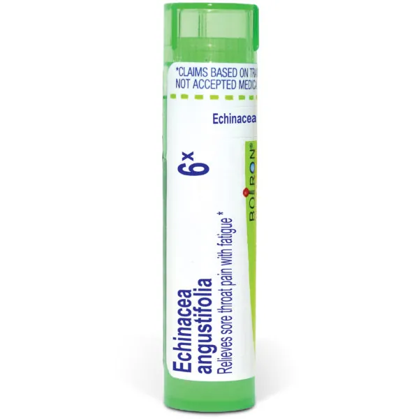 Customize your care with Boiron single medicines for highly targeted relief. Echinacea Angustifolia is a homeopathic medicine for sore throat pain with fatigue.* The pellets melt in your mouth and can be taken on the go, no food or water needed.