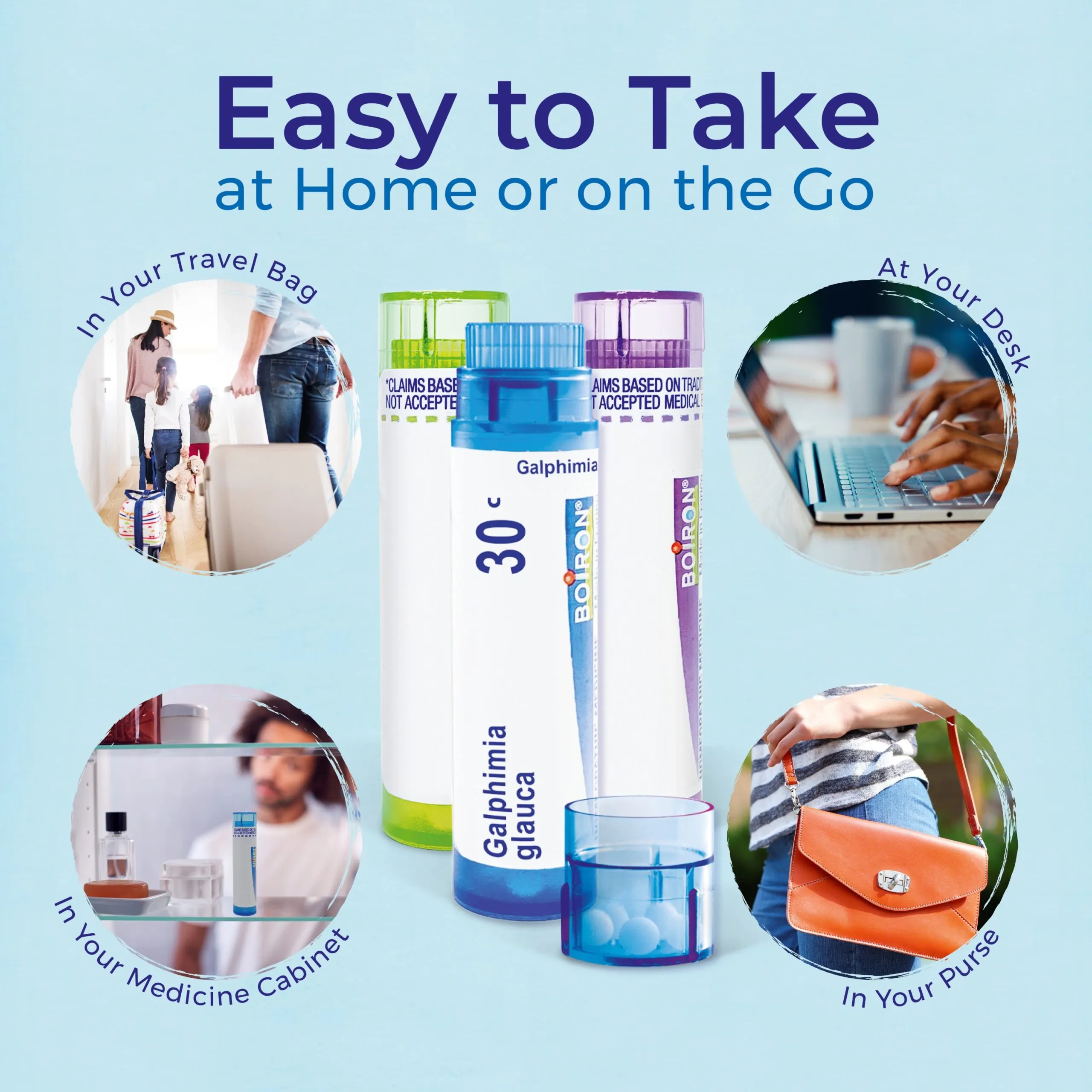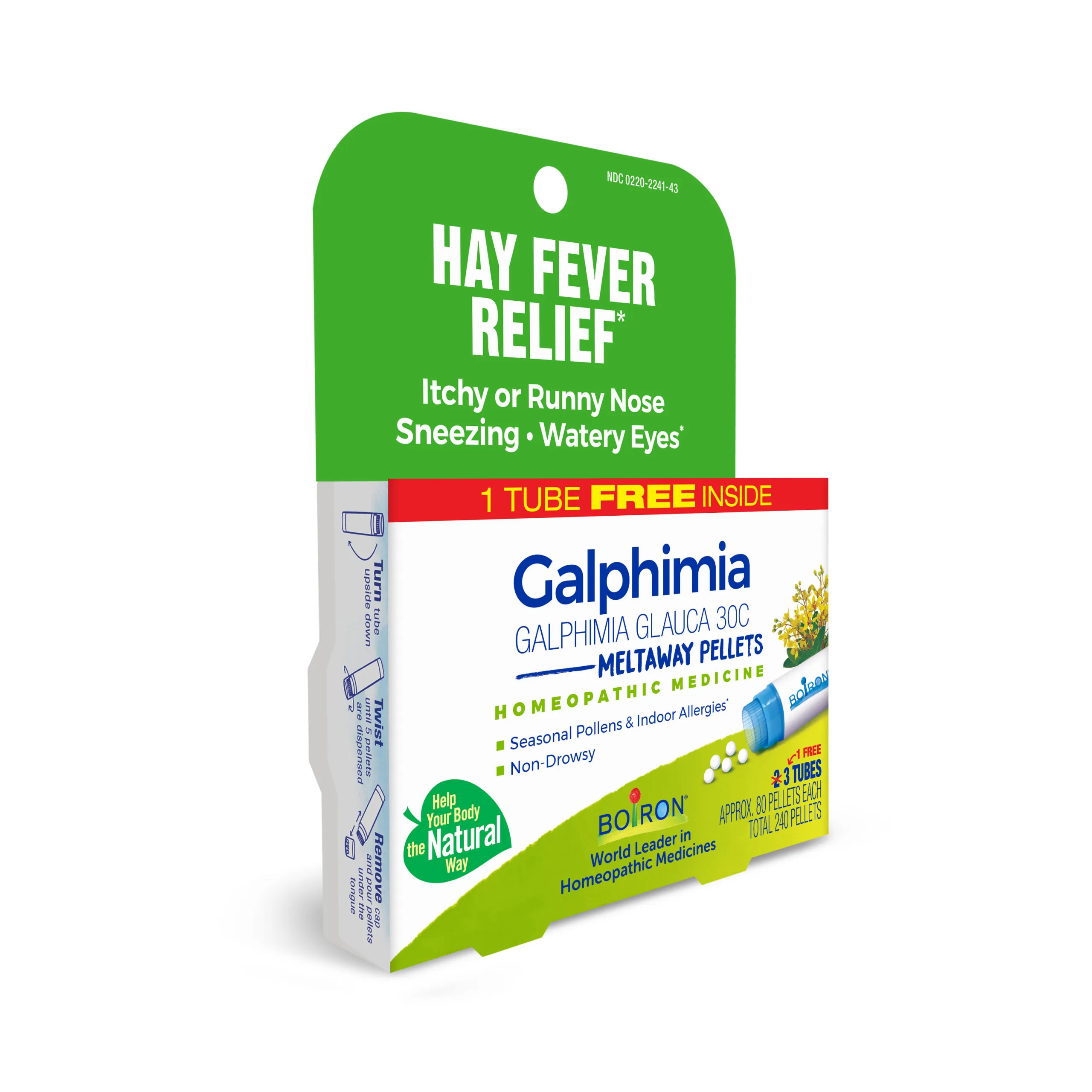 Customize your care with Boiron single medicines for highly targeted relief. Galphimia glauca is a homeopathic medicine that relieves hay fever symptoms, such as itchy, stuffy, or runny nose, nasal congestion, and eye irritation.* It’s ideal for adults and children with allergic rhinitis caused by seasonal pollens and mold, dust mites, or pet allergens. This medicine is non-drowsy and will not interact with other medications, herbs, or supplements. The meltaway pellets dissolve in the mouth without water and come in easy dispensing tubes to take on the go.