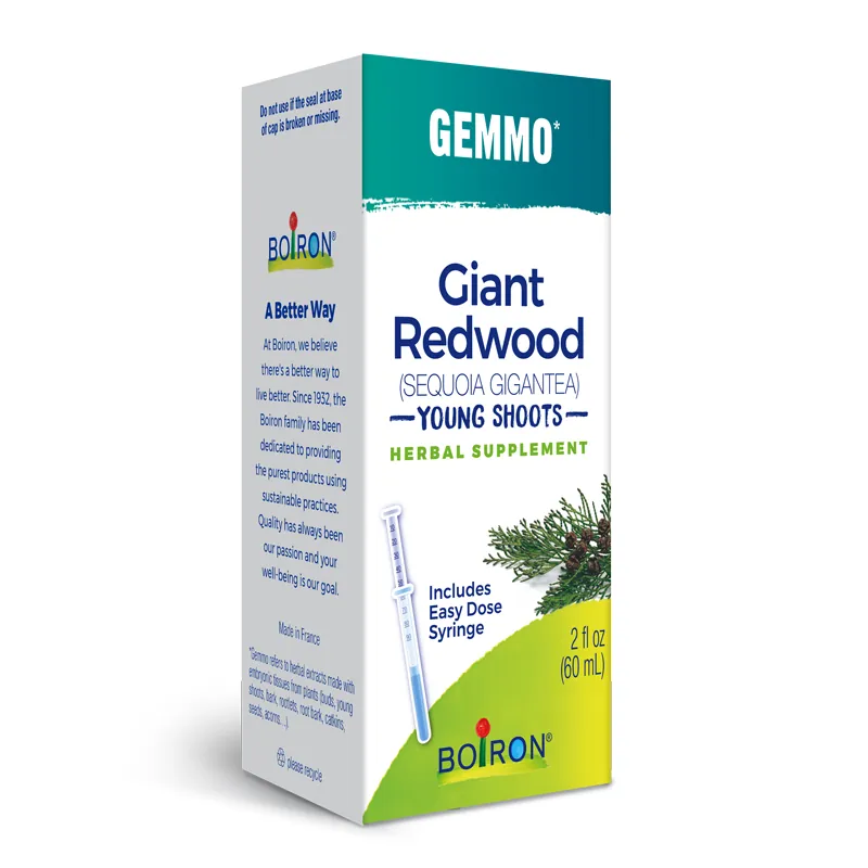 This herbal supplement is an extract of young shoots from the giant redwood tree Sequoia gigantea. A gemmo is an herbal extract made with embryonic tissues from plants (e.g., buds, young shoots, barks, rootlets, root barks, catkins, seeds, acorns, and saps).