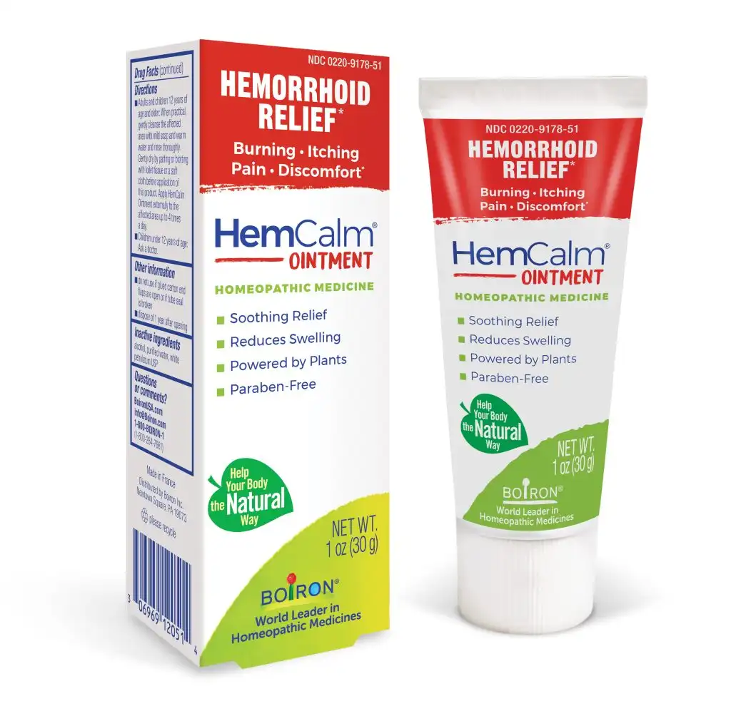 Boiron HemCalm Ointment helps shrink swollen hemorrhoids while relieving symptoms like burning, itching, pain, and discomfort.* This homeopathic medicine is made with plant-based active ingredients in a paraben-free formula that soothes and moisturizes; protects against irritation; and lubricates.