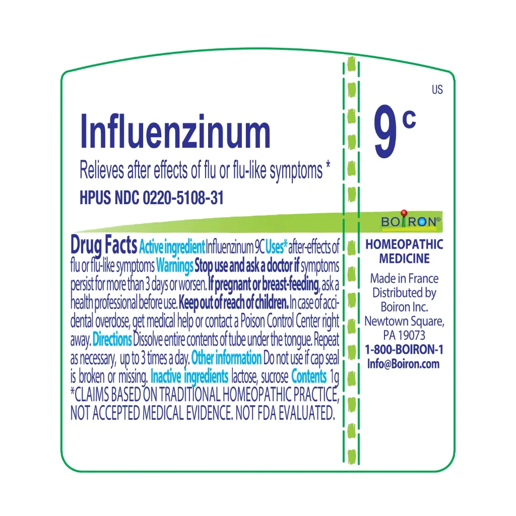 Customize your care with Boiron single medicines for highly targeted relief. Influenzinum is a homeopathic medicine that relieves after effects of flu or flu-like symptoms.* The pellets melt in your mouth and can be taken on the go, no food or water needed.