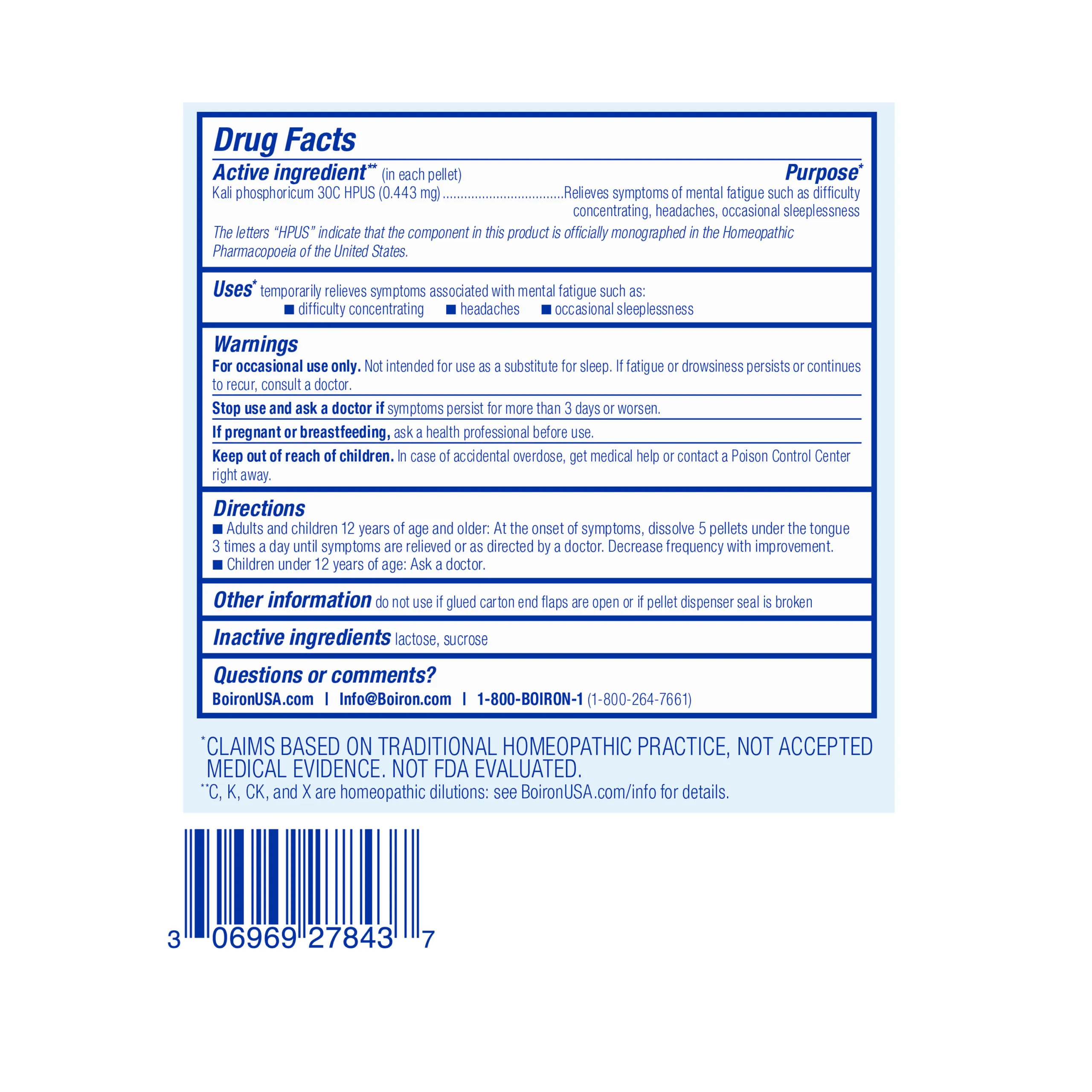 Customize your care with a Boiron single medicine like Kali phosphoricum 30C. It addresses symptoms associated with mental fatigue such as difficulty concentrating, headaches, and occasional sleeplessness.* Made with a single active ingredient, Kali phos does not contain any stimulants or caffeine that inhibit sleep. Itโs also non-drowsy, non-habit forming, and has no known interactions with other medications or supplements. The unflavored meltaway pellets are easy to take and dissolve in your mouth without the need for food or water.