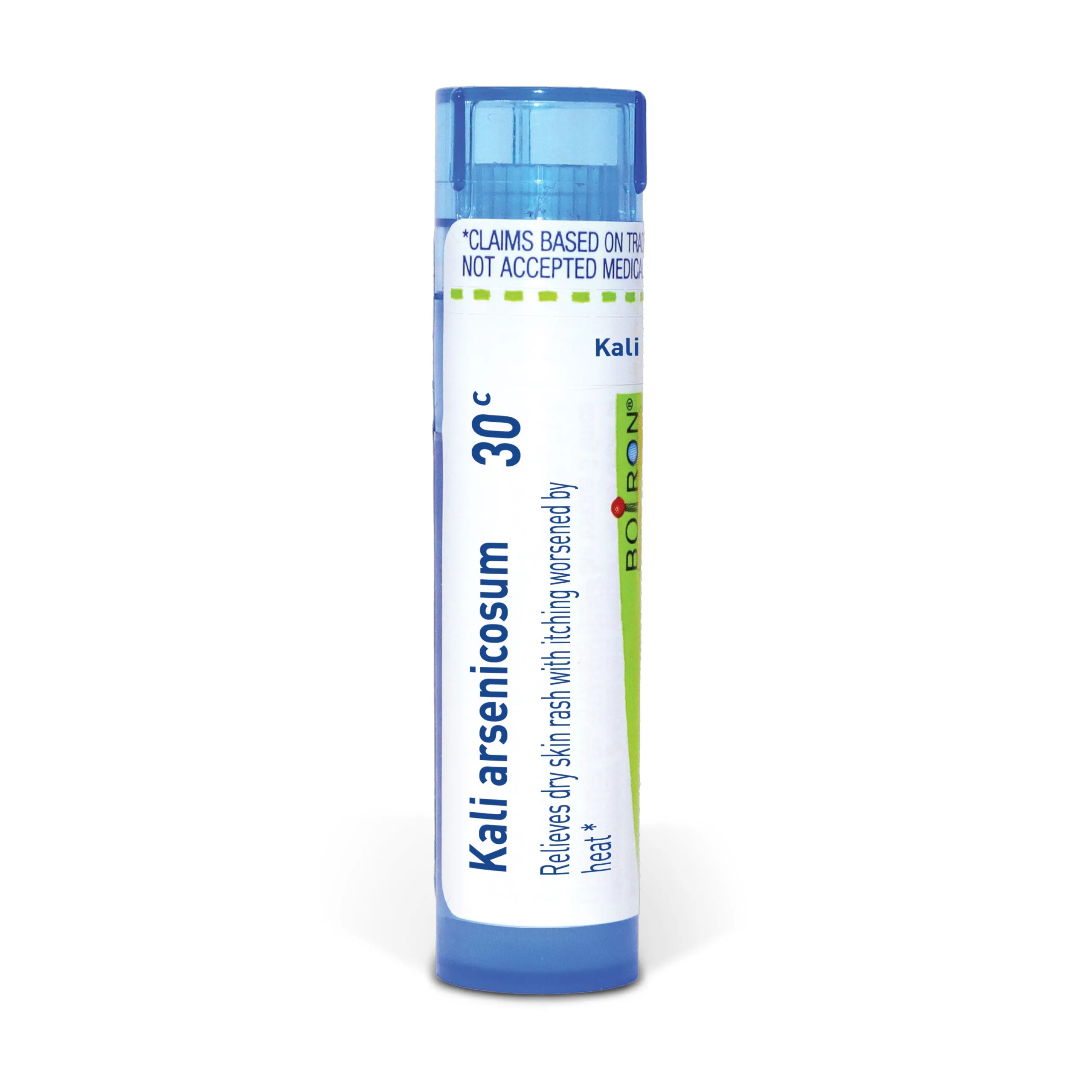 Customize your care with Boiron single medicines for highly targeted relief. Kali Arsenicosum 30C is a homeopathic medicine that relieves dry skin rash with itching worsened by heat.* The pellets melt in your mouth and can be taken on the go, no food or water needed.