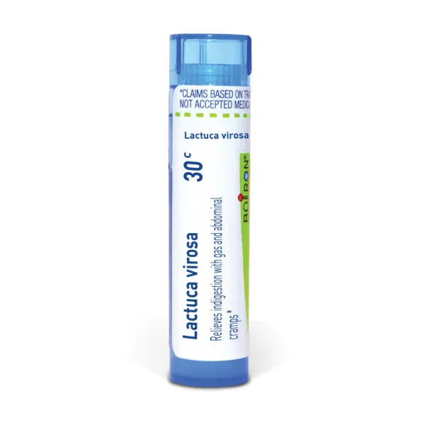 Customize your care with Boiron single medicines for highly targeted relief. Lactuca Virosa is a homeopathic medicine that relieves indigestion with gas and abdominal cramps.* The pellets melt in your mouth and can be taken on the go, no food or water needed.
