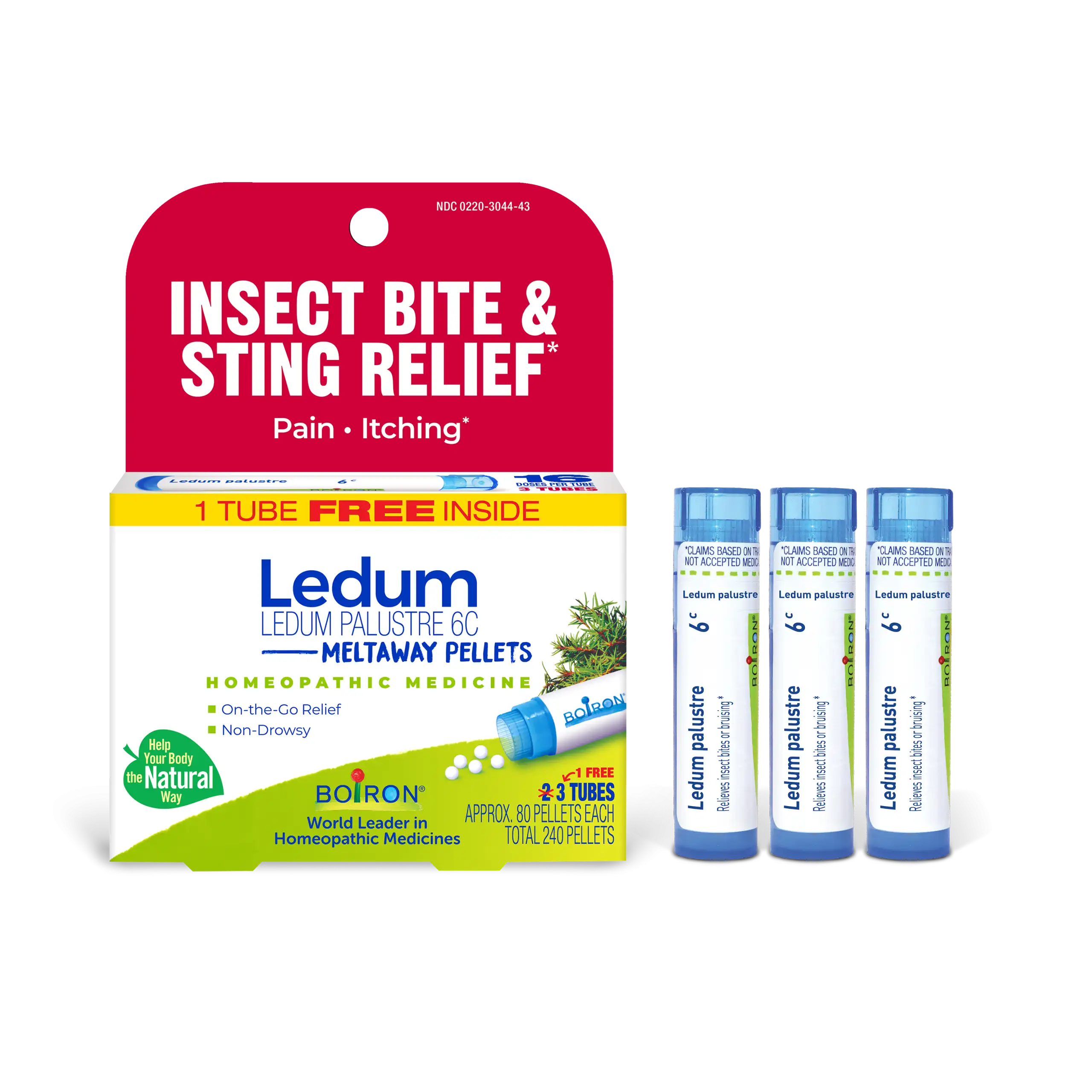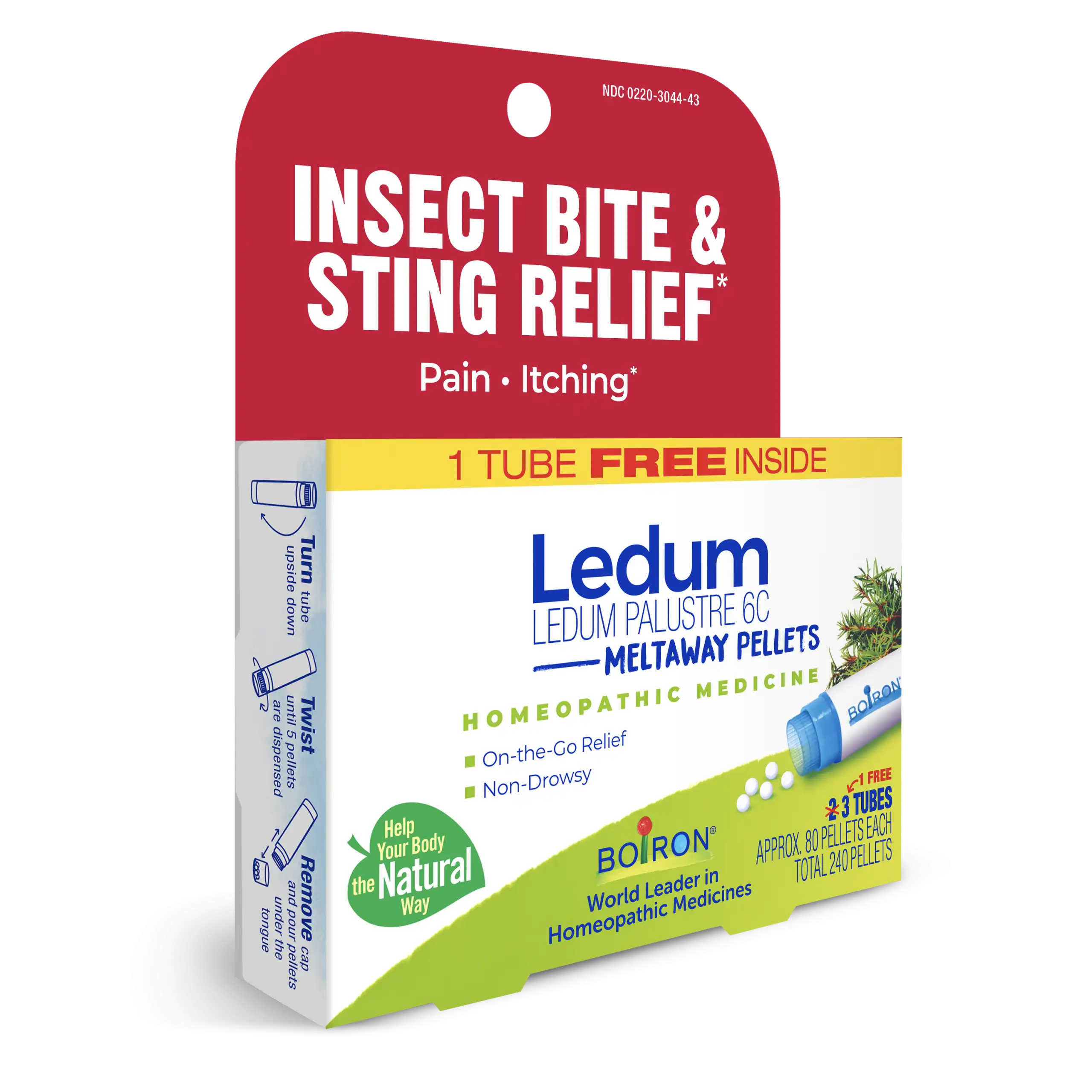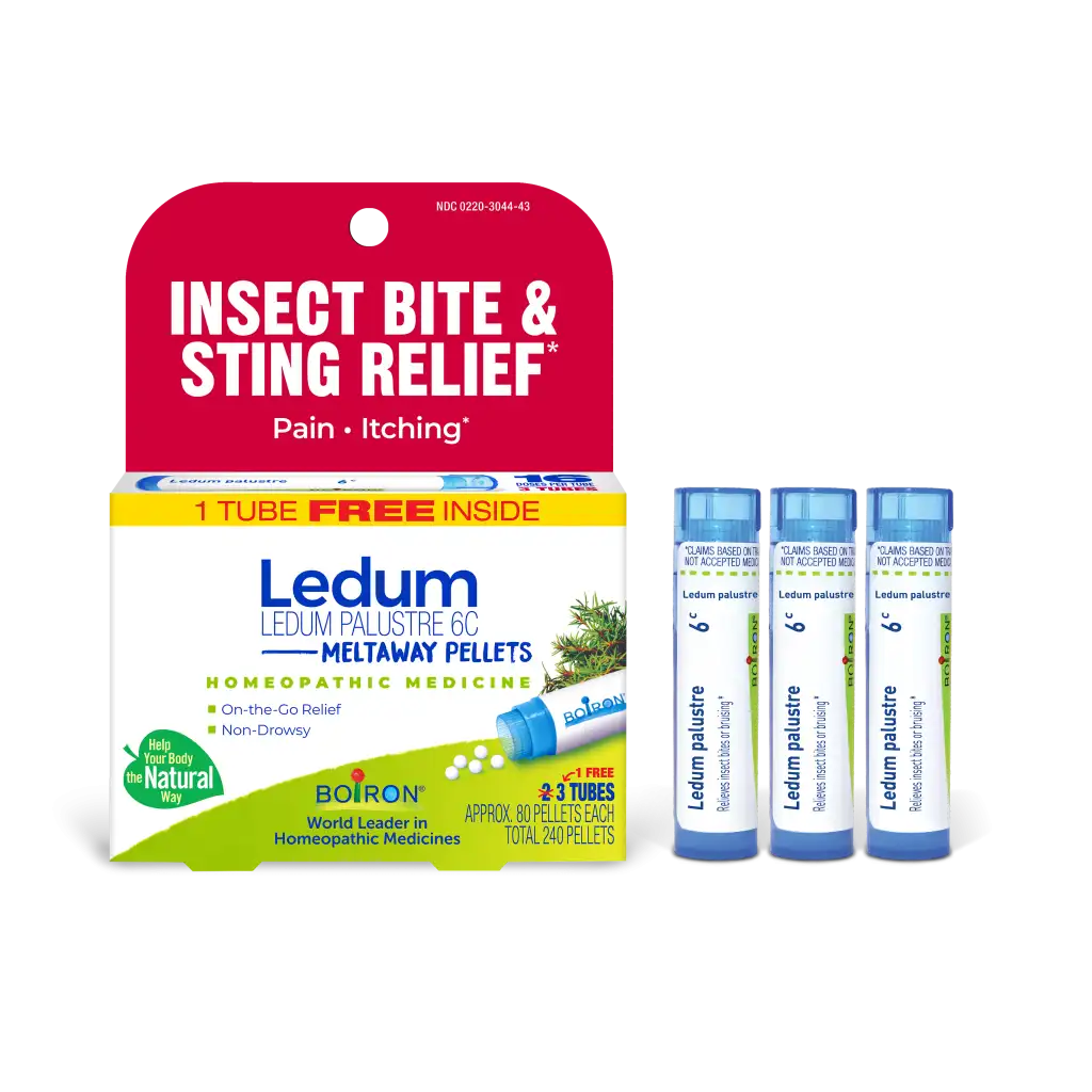 Customize your care with Boiron single medicines for highly targeted relief. Ledum palustre 6C is a homeopathic medicine that is taken orally to relieve the pain and itching due to minor insect bites and stings.* Ideal for adults and children, itโs designed for stings from mosquitos, bees, ants, flies, and other common insects. The meltaway pellets dissolve in the mouth without water and come in easy dispensing tubes to take on the go.