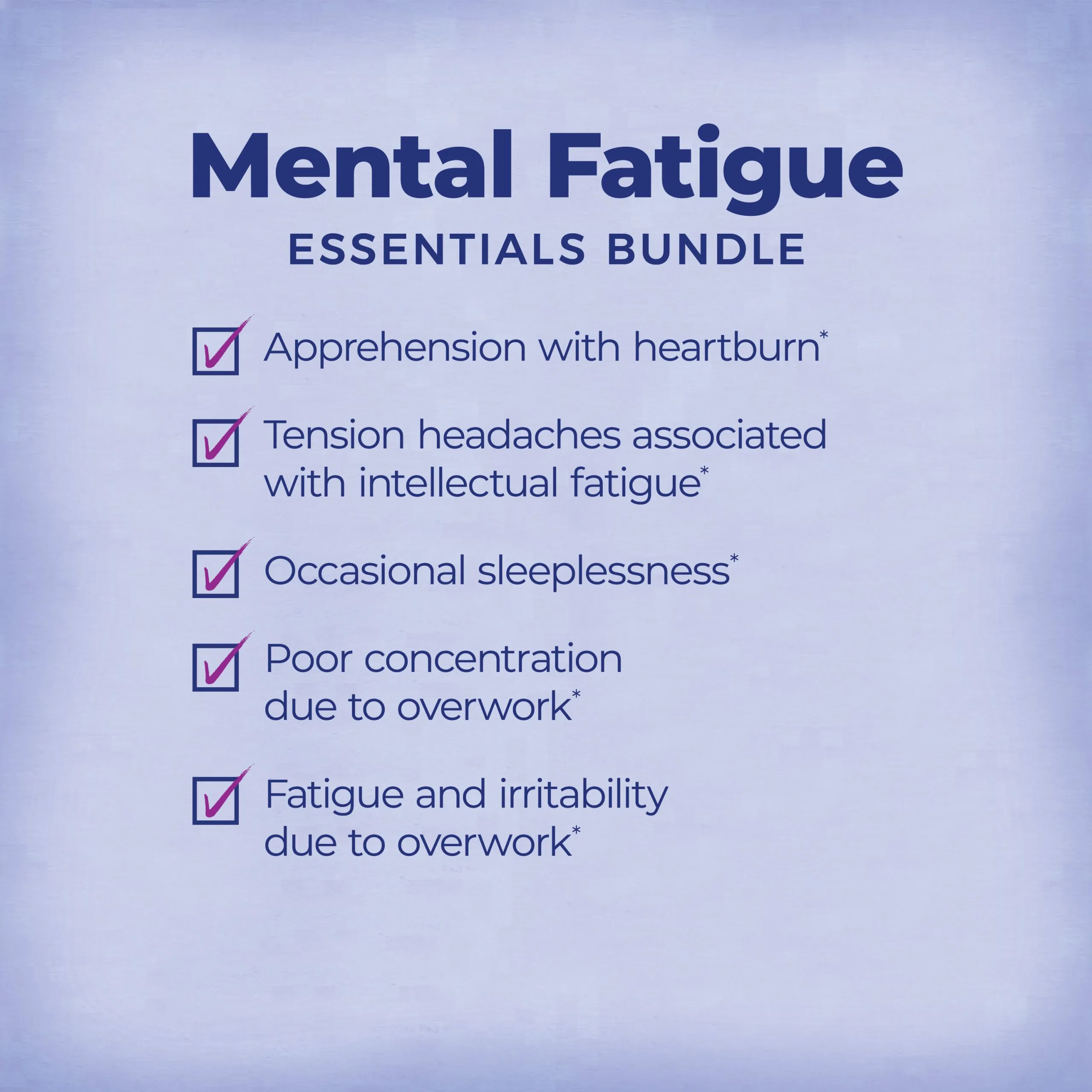 The Mental Fatigue Essentials Bundle by Boiron is an easy, economical way to customize your care. It features five of the most popular homeopathic single medicines used to address symptoms associated with intellectual fatigue and lack of concentration. Whether new to homeopathy or an experienced user, this bundle is a must-have for anyone looking for targeted relief.