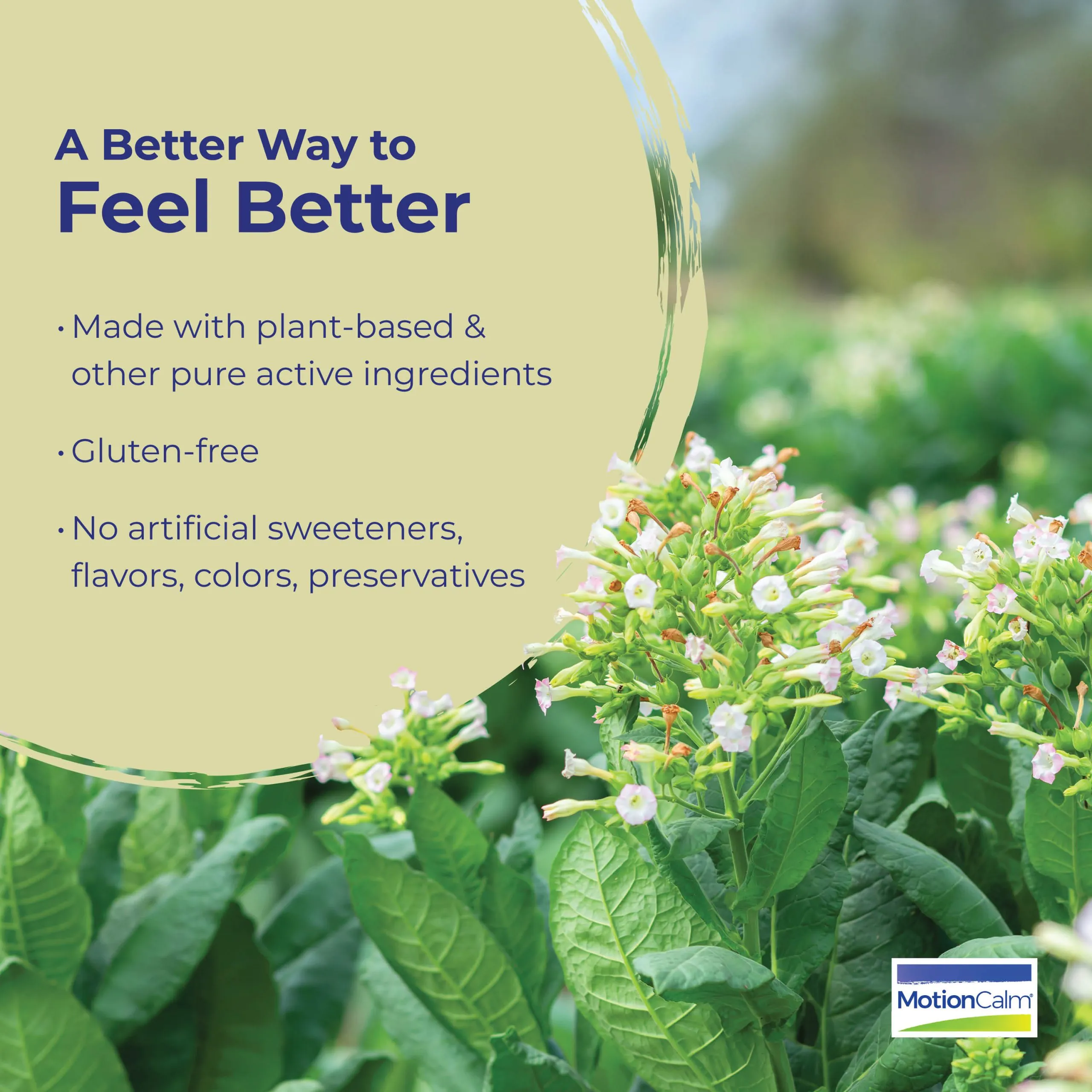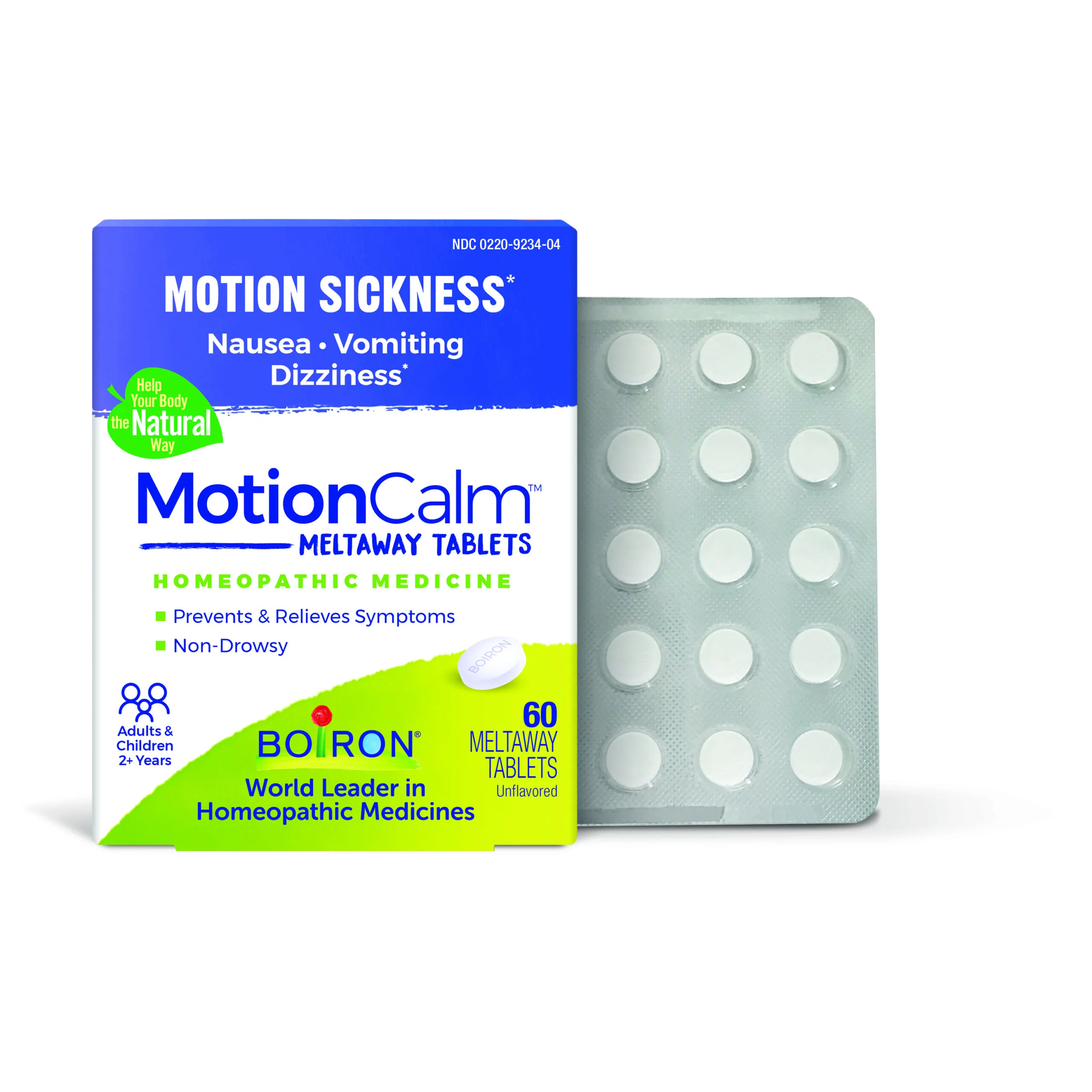 Take the worry out of travel with MotionCalm by Boiron. This homeopathic medicine prevents and relieves nausea, vomiting, and dizziness associated with travel-related motion sickness.* It’s also useful for motion sickness from amusement rides or video games.* Convenient and easy to use, the meltaway tablets dissolve in the mouth without food or water. Take the evening before and day of travel to prevent motion sickness or take on the spot whenever symptoms strike.