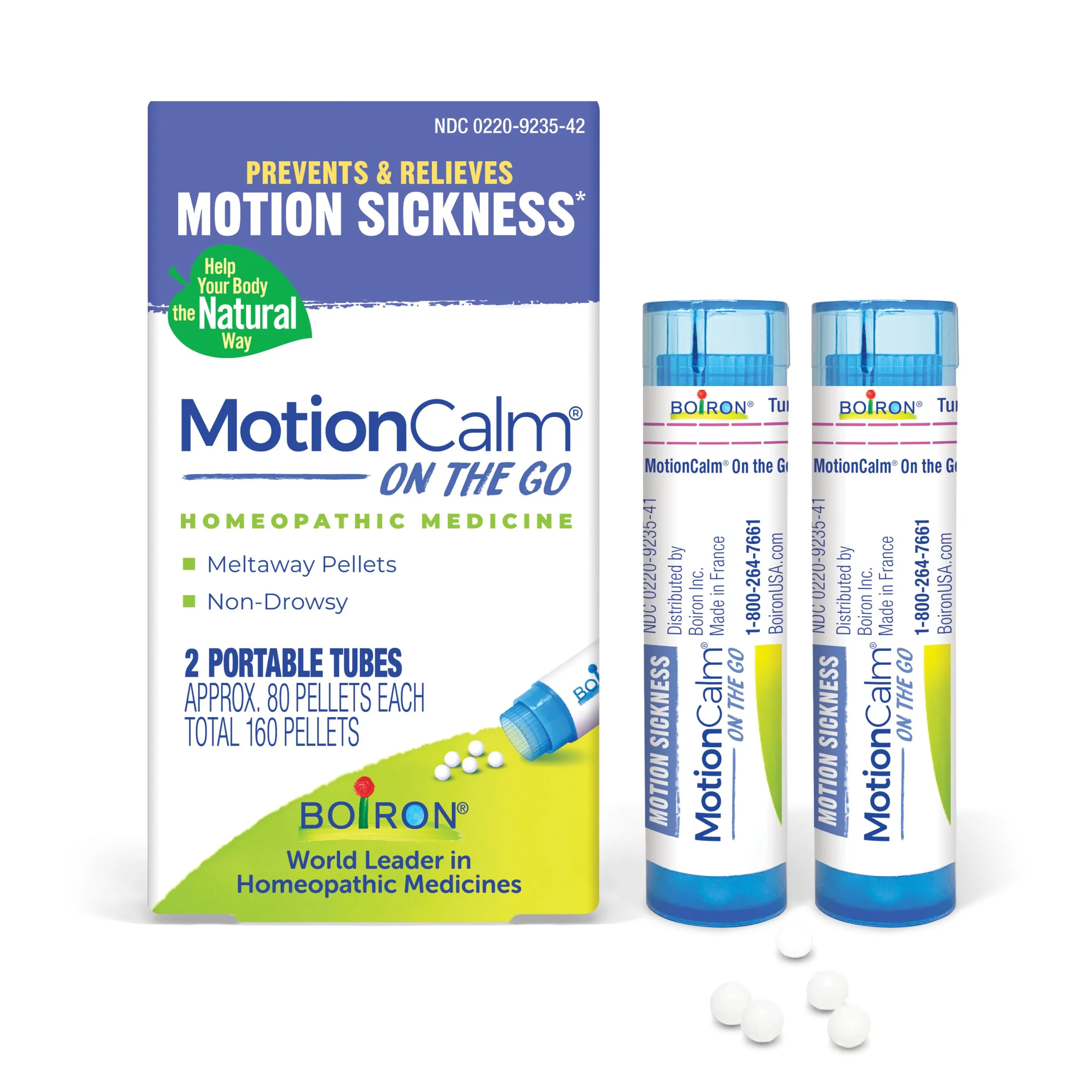 Find motion sickness relief wherever you go with MotionCalm On the Go by Boiron. This homeopathic medicine, powered by plant-based and other pure active ingredients, prevents and relieves motion sickness from travel, amusement rides, or video games.* The meltaway pellets dissolve in your mouth without water, allowing you to act fast against nausea, vomiting, and dizziness.* Made for ages 2 and up, MotionCalm On the Go Pellets are offered in convenient, portable tubes for relief that travels with you.