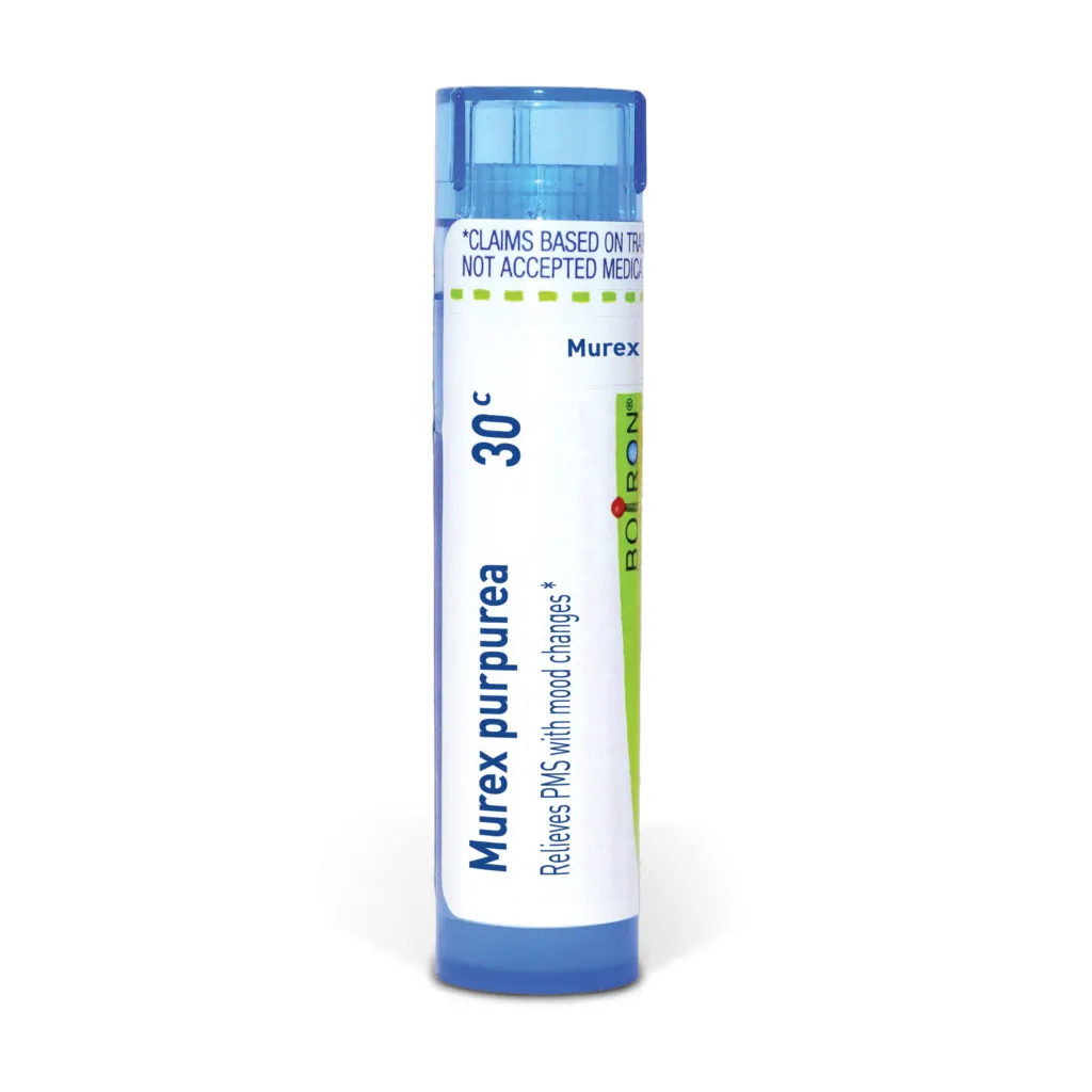 Customize your care with Boiron single medicines for highly targeted relief. Murex Purpurea is a homeopathic medicine that relieves PMS with mood changes.* The pellets melt in your mouth and can be taken on the go, no food or water needed.