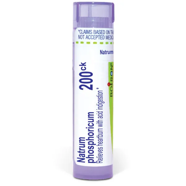 Customize your care with Boiron single medicines for highly targeted relief. Natrum Phosphoricum is a homeopathic medicine that relieves heartburn with acid indigestion.* The pellets melt in your mouth and can be taken on the go, no food or water needed.