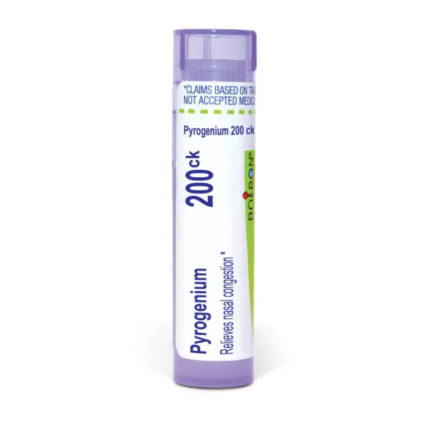 Customize your care with Boiron single medicines for highly targeted relief. Pyrogenium is a homeopathic medicine that relieves nasal congestion.* The pellets melt in your mouth and can be taken on the go, no food or water needed.