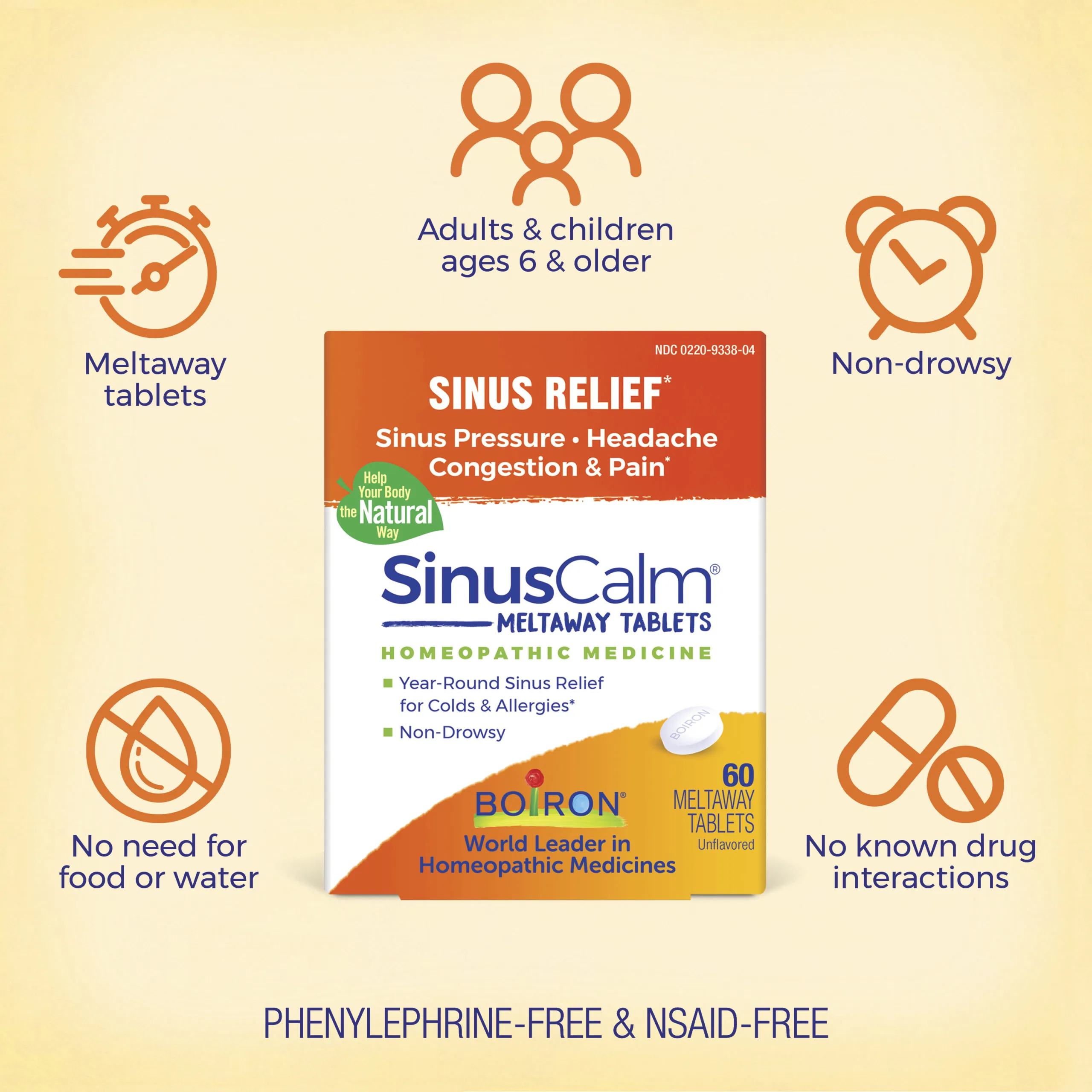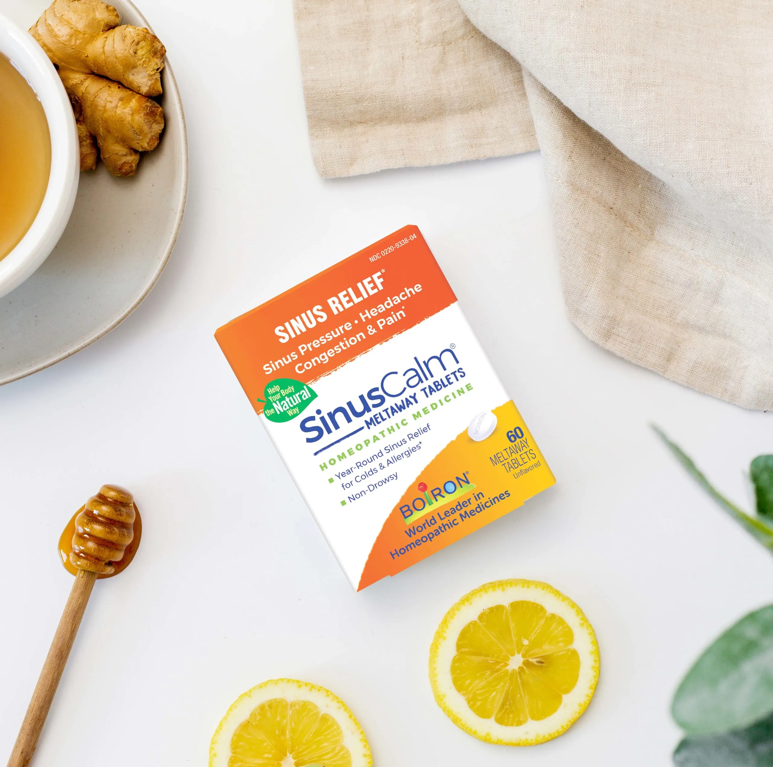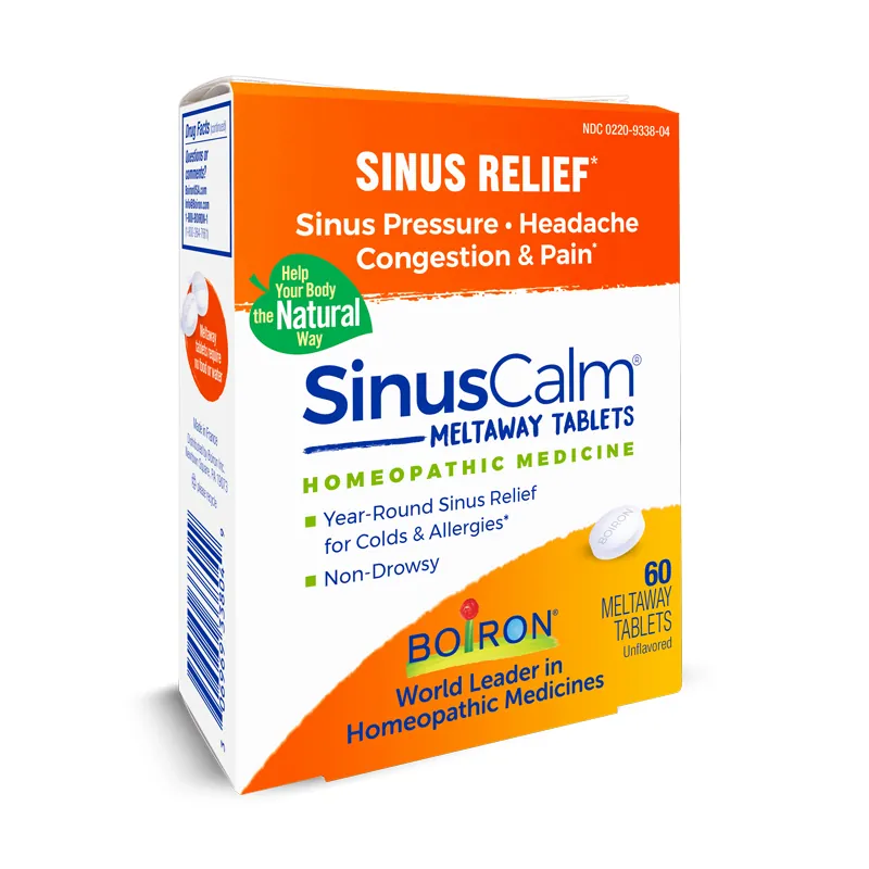 Unlike conventional medications that mask full-blown symptoms, SinusCalm works with your body to relieve nasal congestion, sinus pressure and pain, and sinus headache due to the common cold or allergies.* The non-drowsy meltaway tablets are phenylephrine-free and won’t interact with other medications, including those for colds and allergies — two of the main causes of sinus congestion. Feel the difference with SinusCalm by Boiron.