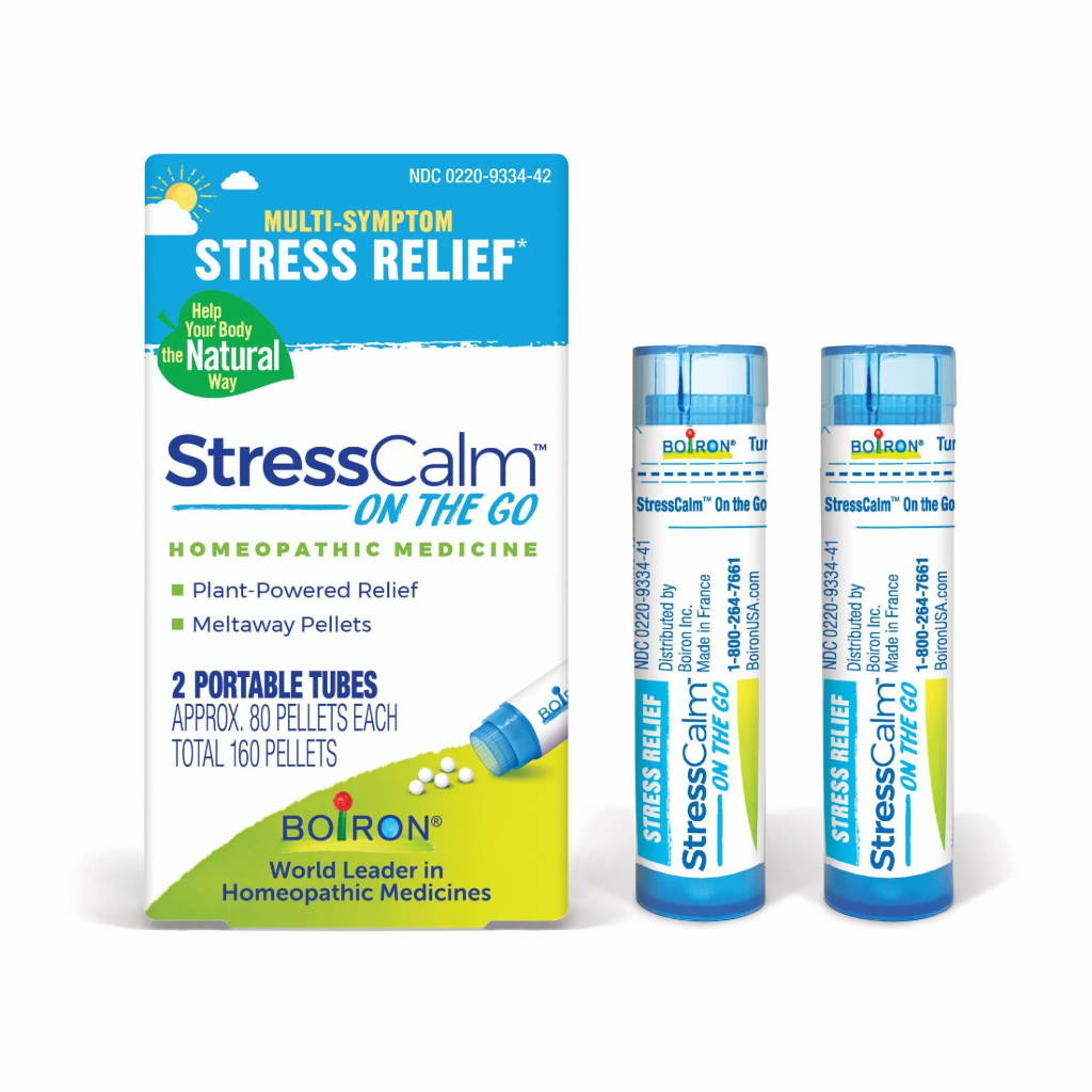Find relief wherever you go with StressCalm On the Go by Boiron. This homeopathic medicine is powered by plants to calm occasional nervous tension, irritability, hypersensitivity, and fatigue due to everyday stress.* It’s sedative-free, so you can stay focused and relaxed without feeling drowsy. The meltaway pellets are convenient to take without water at the first sign of stress, such as before performing, public speaking, taking a test, or flying. StressCalm On the Go pellets are offered in convenient, portable tubes for relief that travels with you.