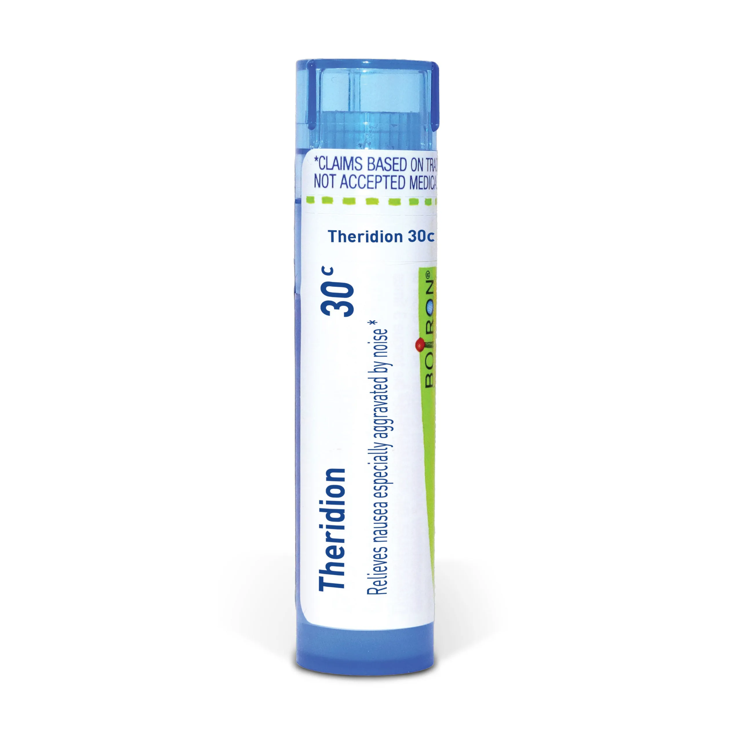 Customize your care with Boiron single medicines for highly targeted relief. Theridion is a homeopathic medicine that relieves nausea especially aggravated by noise.* The pellets melt in your mouth and can be taken on the go, no food or water needed.