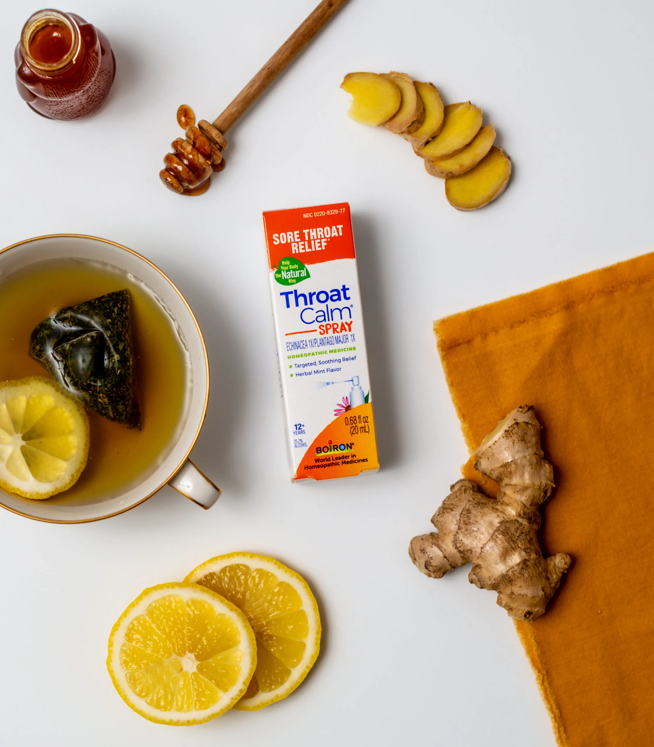 ThroatCalm Spray by Boiron is a cooling mist that works on contact to provide targeted sore throat relief without the numbing effects of traditional throat sprays and lozenges. Every spray delivers a dose of plant-powered active ingredients, including Echinacea, to soothe and relieve occasional minor sore throat pain.* The natural, mint-like herbal flavor tastes light and refreshing, making it a go-to solution for easy and enjoyable relief.